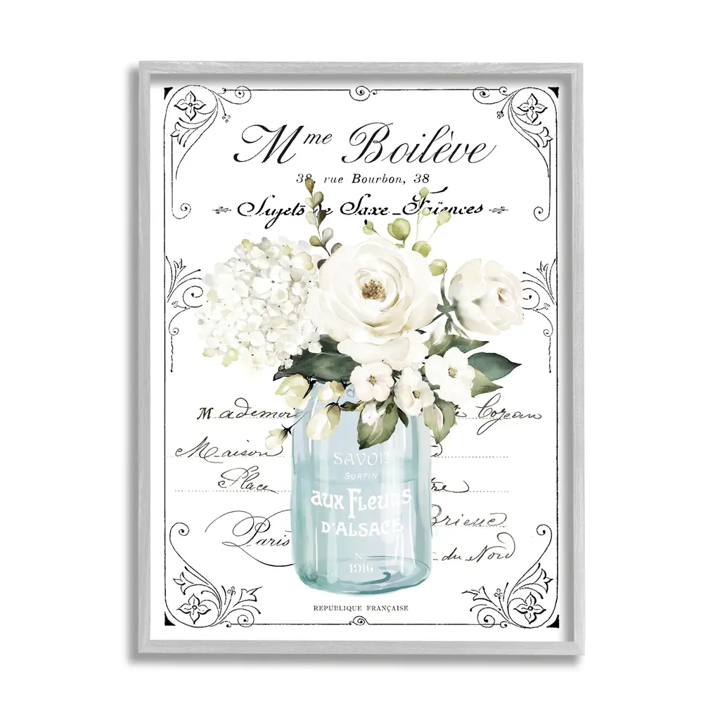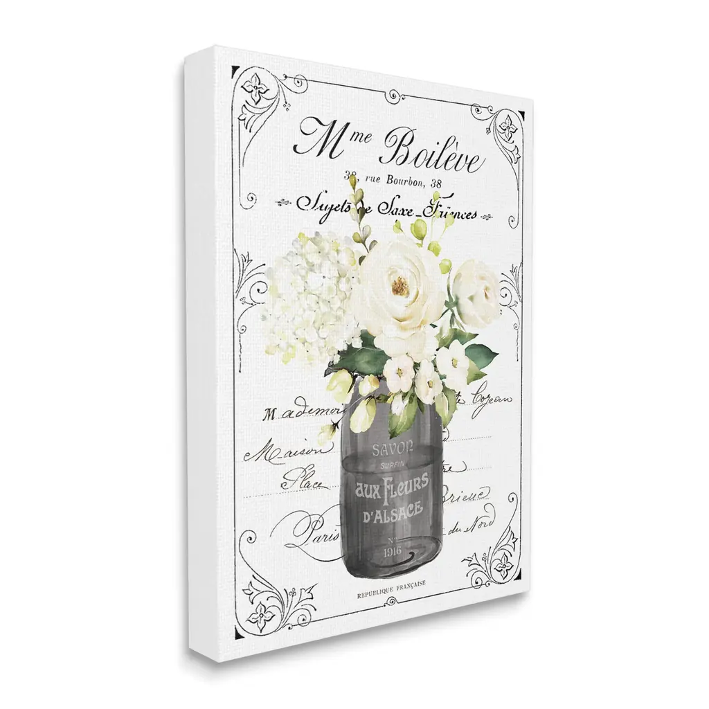 Stupell Vintage Parisian Bathroom Floral Bouquet White Flowers Canvas Wall Art - 30 X 40
