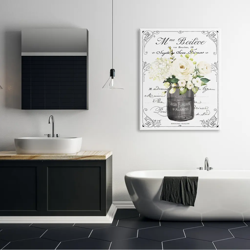 Stupell Vintage Parisian Bathroom Floral Bouquet White Flowers Canvas Wall Art - 36 X 48