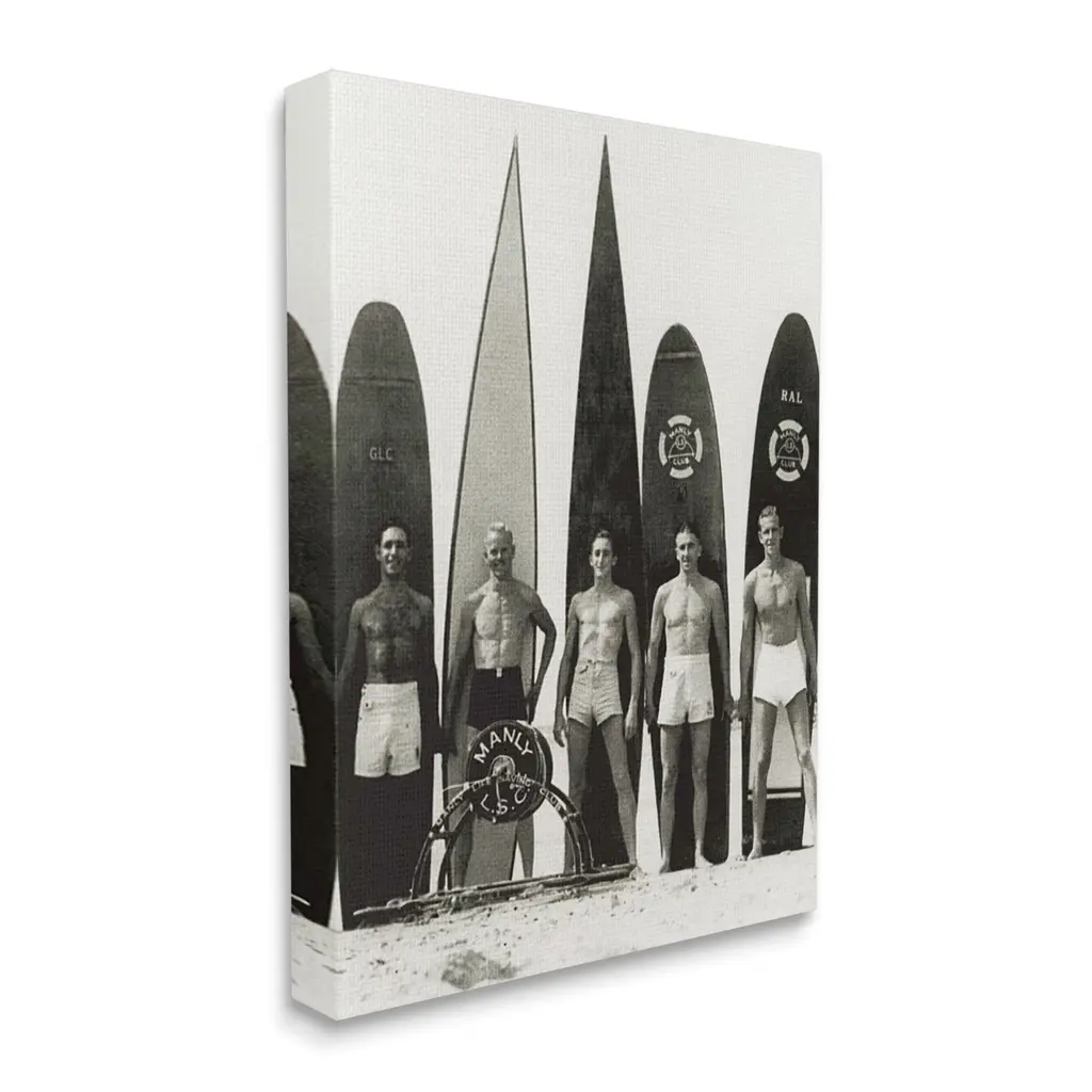 Stupell Vintage Photography Men Surfer Surfboards Beach Sport Canvas Wall Art, Design By Graffitee Studios - 24 X 30