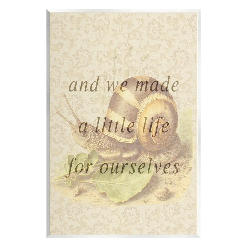 Our wall plaques start as high-quality lithograph prints mounted on durable 0.5-inch thick MDF wood. Each piece is hand finished and comes with a fresh layer of white foil on the sides to give it a crisp, clean look. Plaques arrive ready to hang without installation and come with removable plastic corners to keep them from damage in transit. Wall Art is made in the USA.Features: Dimensions: 10 x 0.5 x 15 InchesWall Plaque Sizes Include Standard: 10 x 0.5 x 15 Oversized: 13 x 0.5 x 19Wall Art is Ready to Hang with Hardware Free Hanging. No installation required. For Easy Set Up Lean or Layer Artwork on Shelf or Against Wall.All of our wall plaques start off as high quality lithograph prints that are then mounted on durable 0.5 inch thick MDF wood. Each piece is hand finished and comes with a fresh layer of foil on the sides to give it a crisp clean look. Made In USA.Artwork Relates To: Animal, Invertebrate, Snail, Insect, Pattern, Vintage, Cottage, And We Made a Little LIfe for OurselvesDesign by Lil' Rue