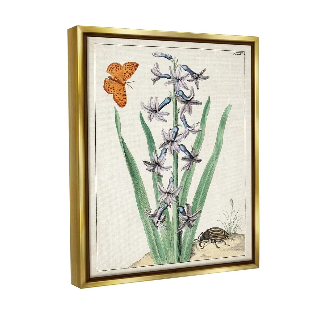 Stupell Vintage Plant & Beetle Framed Floater Canvas Wall Art Design By World Art Group - 25 X 31 - Gold