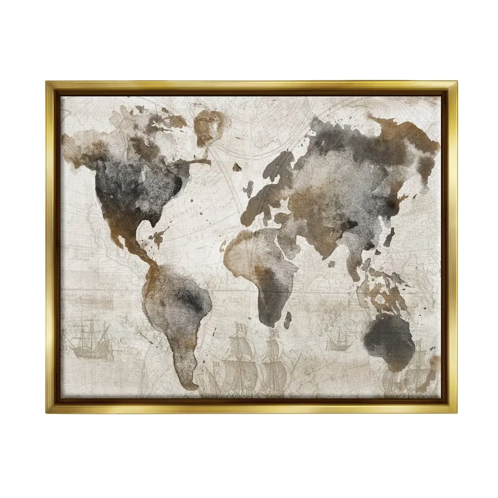 Stupell Vintage Rustic World Map Framed Floater Canvas Wall Art By Conrad Knutsen - 20 X 16 - Gold