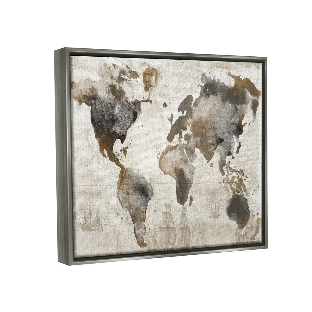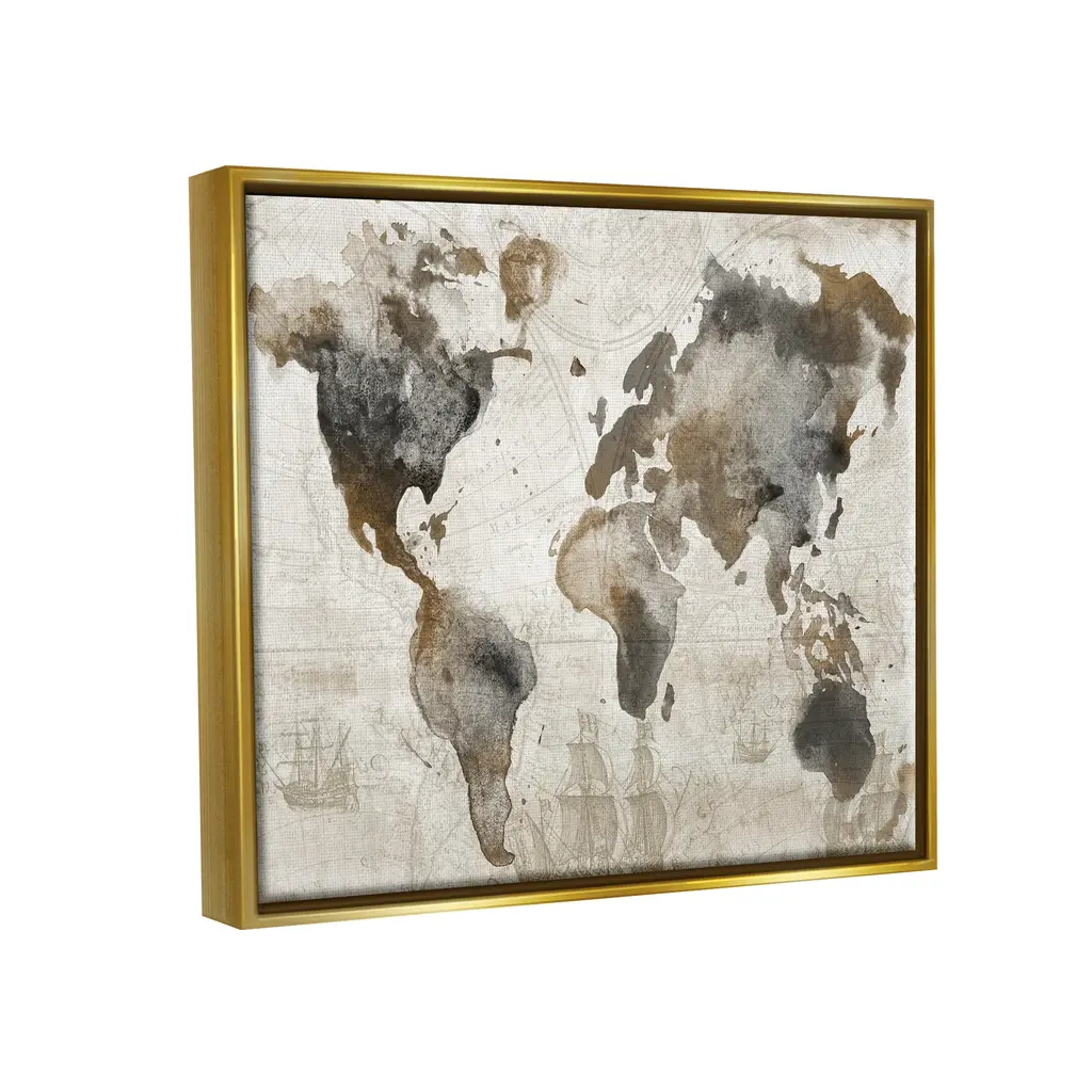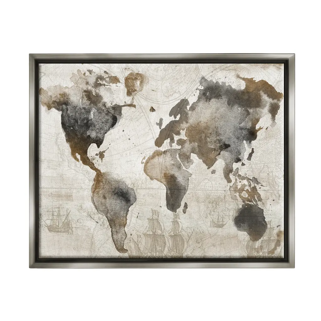 Elevate your home or office to the next level with Stupell Framed Floating Canvas Wall Art. Our premium hand-stretched canvas is mounted securely into a sturdy lightweight frame. The museum-style gap between the wrapped canvas and the box frame gives the illusion of floating artwork. Stupell Wall Art is made in the USA.Features: Dimensions: 21 x 1.7 x 17 Frame, 20 x 1.5 x 16 Canvas ArtFloating Frame Sizes Include Standard: 21 x 1.7 x 17 Oversized: 31 x 1.7 x 25Wall Art is Ready to Hang - No Installation or Hardware Needed. For Easy Set Up Lean or Layer Artwork on Shelf or Against Wall.Our elevated 1.7" Thick Floating Frame is the perfect complement to our canvas style Wall Art. We use only the highest quality inks in house with industry leading printing solutions. Canvas is hand stretched over a durable wood foundation and then mounted securly into a Modern Box Frame. Made in the USA.Artwork Relates To: Rustic, Vintage, World Map, BrownDesign by Conrad Knutsen