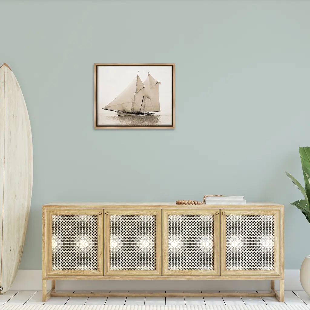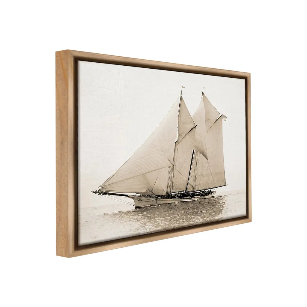 Elevate your home or office to the next level with Stupell Framed Floating Canvas Wall Art. Our premium hand-stretched canvas is mounted securely into a sturdy lightweight frame. The museum-style gap between the wrapped canvas and the box frame gives the illusion of floating artwork. Stupell Wall Art is made in the USA.Features: Dimensions: 21 x 1.7 x 17 Frame, 20 x 1.5 x 16 Canvas ArtFloating Frame Canvas Products are available in sizes 21"x17" and 31"x25". All Floating Frame Canvas Products have a 1.7" Depth.Wall Art is Ready to Hang with Hardware Free Hanging. No Installation required. For Easy Set Up Lean or Layer Artwork on Shelf or Against Wall. Artwork is Permently Fixed into the Frame.Our elevated 1.7" Thick Floating Frame is the perfect complement to our canvas style Wall Art. We use only the highest quality inks in house with industry leading printing solutions. Canvas is hand stretched over a durable wood foundation and then mounted securly into a Modern Box Frame. Made in the USA.Artwork Relates To: Boat, Sailboat, Watercraft, Water, Yacht, Sea, Ocean, Nautical, Maritime, Vintage, PhotographyDesign by GraffiTee Studios