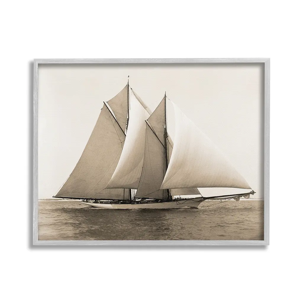 Add dimension to any room with our textured Framed Giclee Artwork. Our framed artwork is securely mounted into a 1.5-inch thick wood grain frame and ready to hang. Frames are available in three alluring styles: black, gray farmhouse and white. In addition, you should check out our oversized options if you want a statement piece. Stupell Wall Art is made in the USA.Features: Dimensions: 14 x 1.5 x 11 FramedFramed Giclee Products are available in the sizes 14"x11", 20"x16" or 30"x24". All Framed Giclee Products have a 1.5" Depth. Wall Art is Ready to Hang with Hardware Free Hanging. No installation required. For Easy Set Up Lean or Layer Artwork on Shelf or Against Wall.Our giclée prints are carefully mounted on a durable MDF backing, and then perfectly finished in a 1.5 inch thick woodgrain frame. Mounted frame colors include black, gray farmhouse and white. Made In USA.Artwork Relates To: Boat, Sailboat, Watercraft, Water, Yacht, Sea, Ocean, Nautical, Maritime, Vintage, PhotographyDesign by GraffiTee Studios