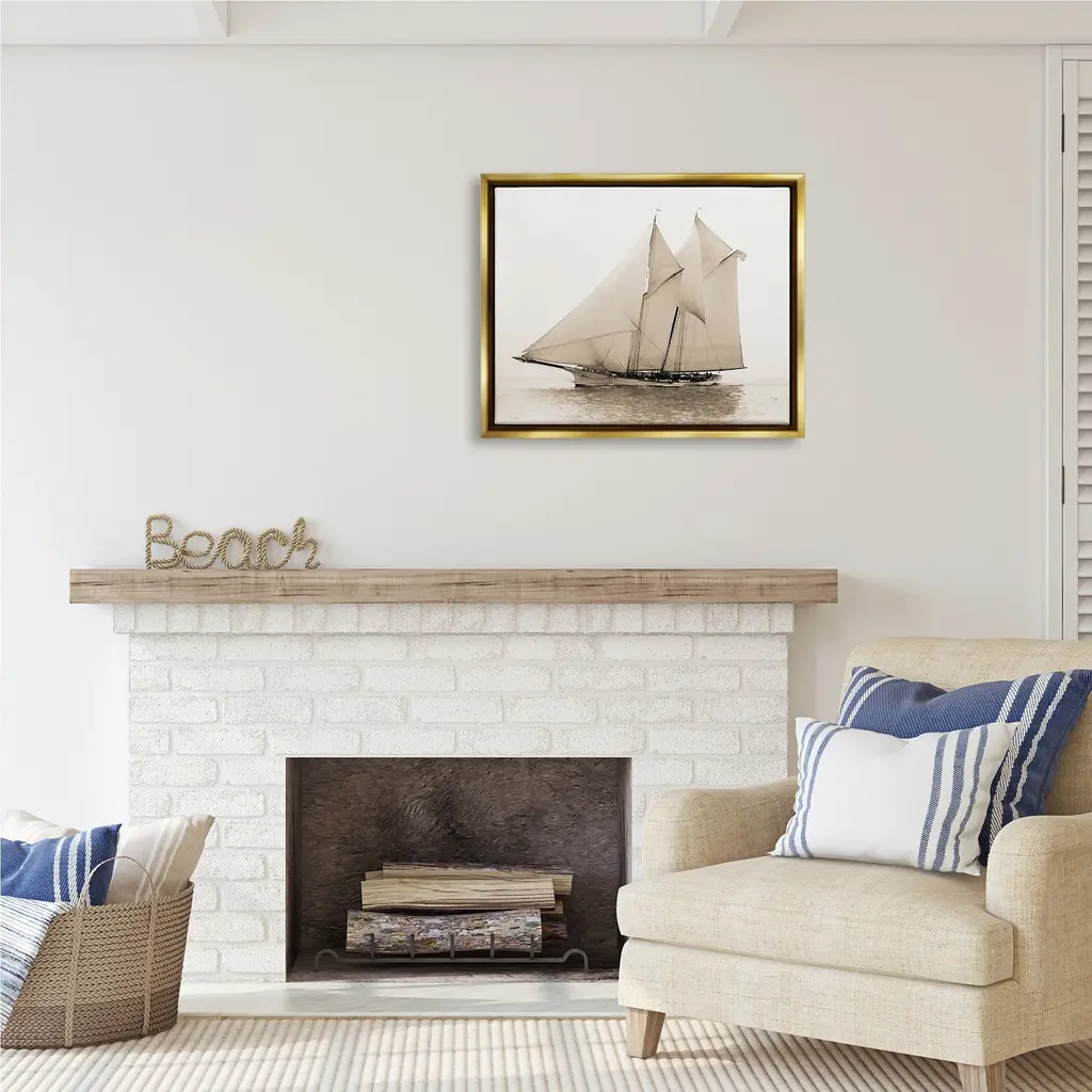 Elevate your home or office to the next level with Stupell Framed Floating Canvas Wall Art. Our premium hand-stretched canvas is mounted securely into a sturdy lightweight frame. The museum-style gap between the wrapped canvas and the box frame gives the illusion of floating artwork. Stupell Wall Art is made in the USA.Features: Dimensions: 21 x 1.7 x 17 Frame, 20 x 1.5 x 16 Canvas ArtFloating Frame Sizes Include Standard: 21 x 1.7 x 17 Oversized: 31 x 1.7 x 25Wall Art is Ready to Hang with Hardware Free Hanging. No installation required. For Easy Set Up Lean or Layer Artwork on Shelf or Against Wall.Our elevated 1.7" Thick Floating Frame is the perfect complement to our canvas style Wall Art. We use only the highest quality inks in house with industry leading printing solutions. Canvas is hand stretched over a durable wood foundation and then mounted securly into a Modern Box Frame. Made in the USA.Artwork Relates To: Boat, Sailboat, Transportation, Vehicle, Yacht, Watercraft, Ocean, Nautical, MaritimeDesign by Graffi*Tee Studios