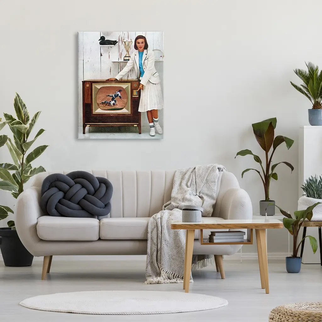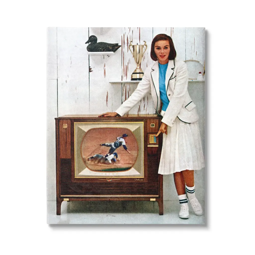 Stupell Vintage Sports Tv Ad Woman Canvas Wall Art By Kathy Alper - 36 X 48
