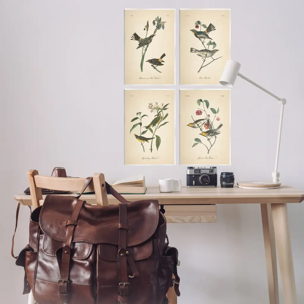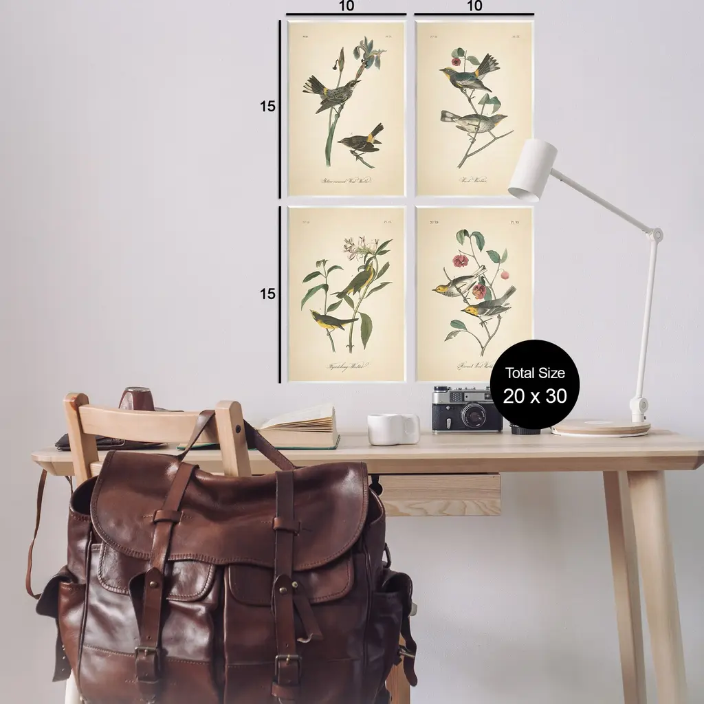 Fill any space with Stupell Wall Art Sets. Our wall plaques start as high-quality lithograph prints mounted on durable 0.5-inch thick MDF wood. Each piece is hand finished and comes with a fresh layer of white foil on the sides to give it a crisp, clean look. Plaques arrive ready to hang without installation and come with removable plastic corners to keep them from damage in transit. Stupell Wall Art is made in the USA.Features: Dimensions: 4 Piece Set, Each Panel is 10 x 0.5 x 15 InchesFour Piece Wall Plaque Sets are available as 10"x15" or 13"x19" Panels. All wall plaques have a 0.5" Depth.Wall Art is Ready to Hang with Hardware Free Hanging. No installation required. For Easy Set Up Lean or Layer Artwork on Shelf or Against Wall.All of our wall plaques start off as high quality lithograph prints that are then mounted on durable 0.5 inch thick MDF wood. Each piece is hand finished and comes with a fresh layer of foil on the sides to give it a crisp clean look. Made In USA.Artwork Relates To: Animal, Bird, Finch, Blackbird, Anthus, Wren, Sparrow, Vintage, Botanical, Traditional, Educational, StudyDesign by Wild Apple Portfolio
