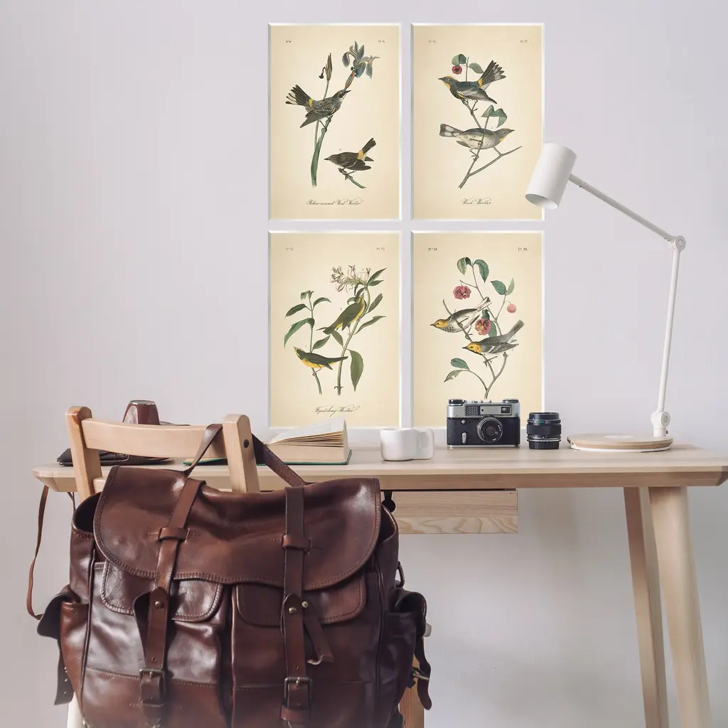 Fill any space with Stupell Wall Art Sets. Our wall plaques start as high-quality lithograph prints mounted on durable 0.5-inch thick MDF wood. Each piece is hand finished and comes with a fresh layer of white foil on the sides to give it a crisp, clean look. Plaques arrive ready to hang without installation and come with removable plastic corners to keep them from damage in transit. Stupell Wall Art is made in the USA.Features: Dimensions: 4 Piece Set, Each Panel is 10 x 0.5 x 15 InchesFour Piece Wall Plaque Sets are available as 10"x15" or 13"x19" Panels. All wall plaques have a 0.5" Depth.Wall Art is Ready to Hang with Hardware Free Hanging. No installation required. For Easy Set Up Lean or Layer Artwork on Shelf or Against Wall.All of our wall plaques start off as high quality lithograph prints that are then mounted on durable 0.5 inch thick MDF wood. Each piece is hand finished and comes with a fresh layer of foil on the sides to give it a crisp clean look. Made In USA.Artwork Relates To: Animal, Bird, Finch, Blackbird, Anthus, Wren, Sparrow, Vintage, Botanical, Traditional, Educational, StudyDesign by Wild Apple Portfolio