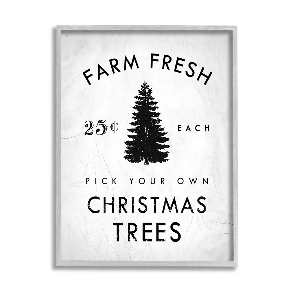 Stupell Vintage Style Christmas Tree Farm Sign Minimal Framed Wall Art - Black - 16 X 20 - Grey