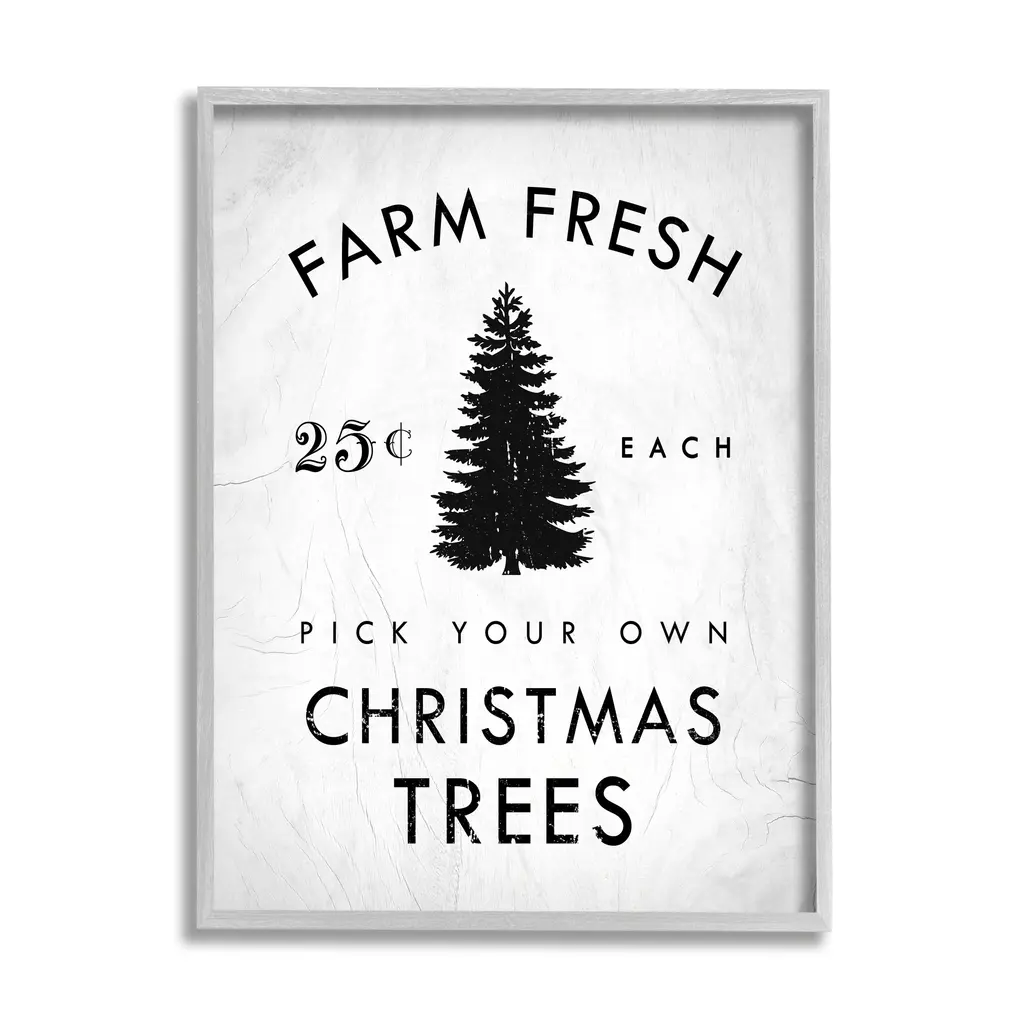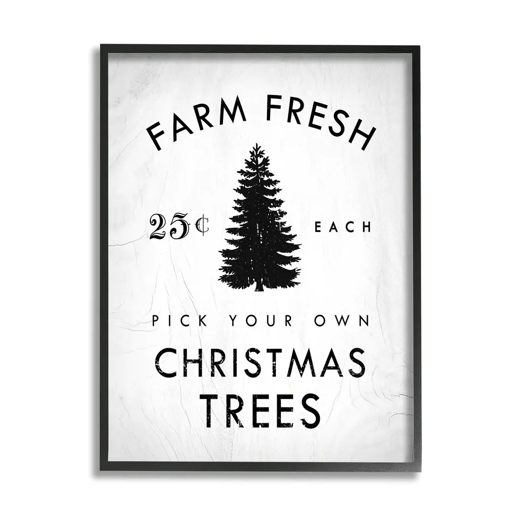 Stupell Vintage Style Christmas Tree Farm Sign Minimal Framed Wall Art - Black - 24 X 30 - Black