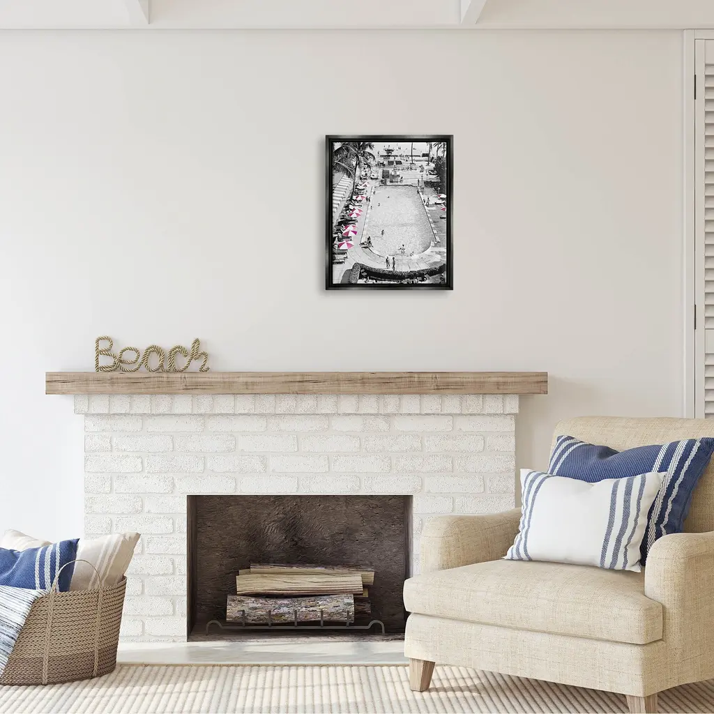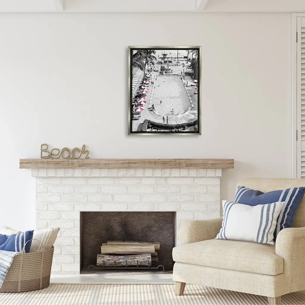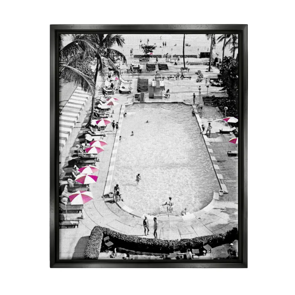 Stupell Vintage Summer Resort Beach Pool Framed Floater Canvas Wall Art By Graffi*tee Studios - 24 X 30 - Black