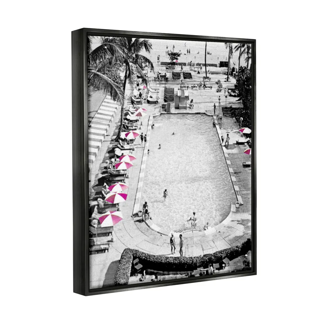 Elevate your home or office to the next level with Stupell Framed Floating Canvas Wall Art. Our premium hand-stretched canvas is mounted securely into a sturdy lightweight frame. The museum-style gap between the wrapped canvas and the box frame gives the illusion of floating artwork. Stupell Wall Art is made in the USA.Features: Dimensions: 17 x 1.7 x 21 Frame, 16 x 1.5 x 20 Canvas ArtFloating Frame Sizes Include Standard: 17 x 1.7 x 21 Oversized: 25 x 1.7 x 31Wall Art is Ready to Hang - No Installation or Hardware Needed. For Easy Set Up Lean or Layer Artwork on Shelf or Against Wall.Our elevated 1.7" Thick Floating Frame is the perfect complement to our canvas style Wall Art. We use only the highest quality inks in house with industry leading printing solutions. Canvas is hand stretched over a durable wood foundation and then mounted securly into a Modern Box Frame. Made in the USA.Artwork Relates To: Summer, Resort, Palm Tree, Water, Waterfront, Swimming Pool, Person, Sea, Tropical, Fun, Tourist, Vacation, BeachDesign by Graffi*Tee Studios