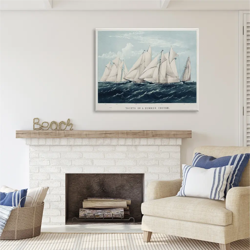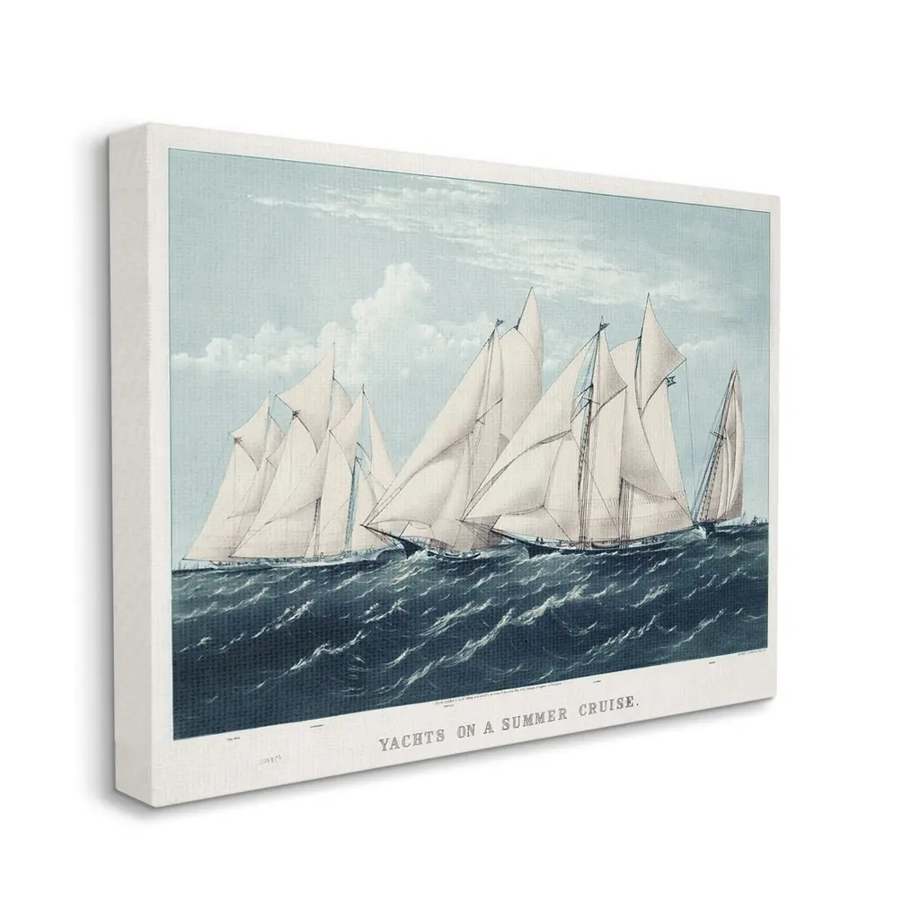 We create our stretched canvas to the highest standards. Using only the highest quality inks and canvas on Mimaki printers, we hand-cut and stretch each piece over a 1.5-inch thick wooden frame for hanging. As a result, the art comes ready to hang on the sturdy ledge with no installation required. Stupell Wall Art is made in the USA.Features: Dimensions: 20 x 1.5 x 16 InchesStretched Canvas Sizes Include Standard: 20 x 1.5 x 16 Large: 30 x 1.5 x 20 X-Large: 40 x 1.5 x 30 Oversized: 48 x 1.5 x 36Wall Art is Ready to Hang with Hardware Free Hanging. No installation required. For Easy Set Up Lean or Layer Artwork on Shelf or Against Wall.Our stretched canvas is created with the highest standards. We use only the highest quality inks and canvas on our in house Mimaki printers, and then hand cut and stretch each piece over a 1.5 inch thick wooden frame for hanging. Made In USA.Artwork Relates To: Boat, Sailboat, Transportation, Vehicle, Painting, Yacht, Water, Watercraft, Ship, Nautical, Maritime, Yachts on a Summer CruiseDesign by Vision Studio