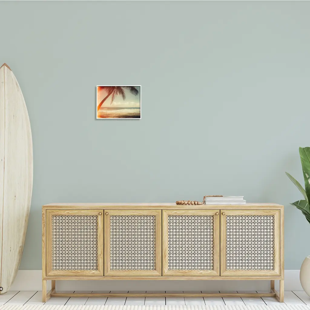 Stupell Vintage Sun Bleached Ocean Scene Hanging Palm Tree Framed Wall Art - 14 X 11 - White
