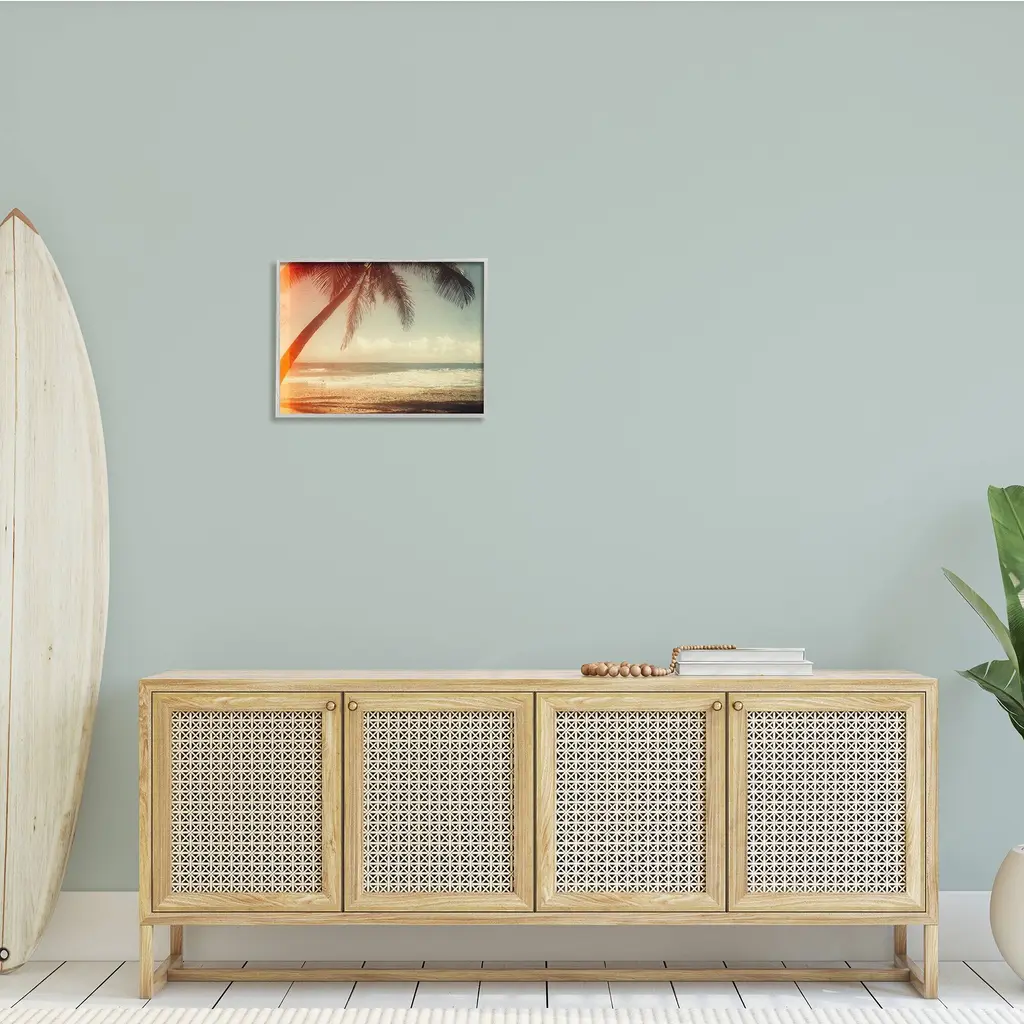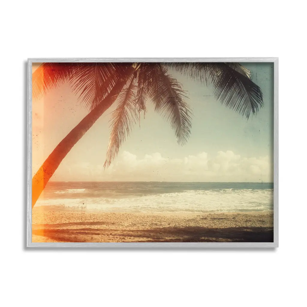 Stupell Vintage Sun Bleached Ocean Scene Hanging Palm Tree Framed Wall Art - 20 X 16 - Grey