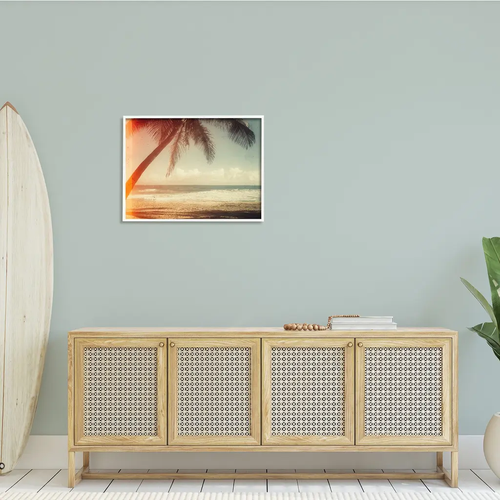 Stupell Vintage Sun Bleached Ocean Scene Hanging Palm Tree Framed Wall Art - 30 X 24 - White