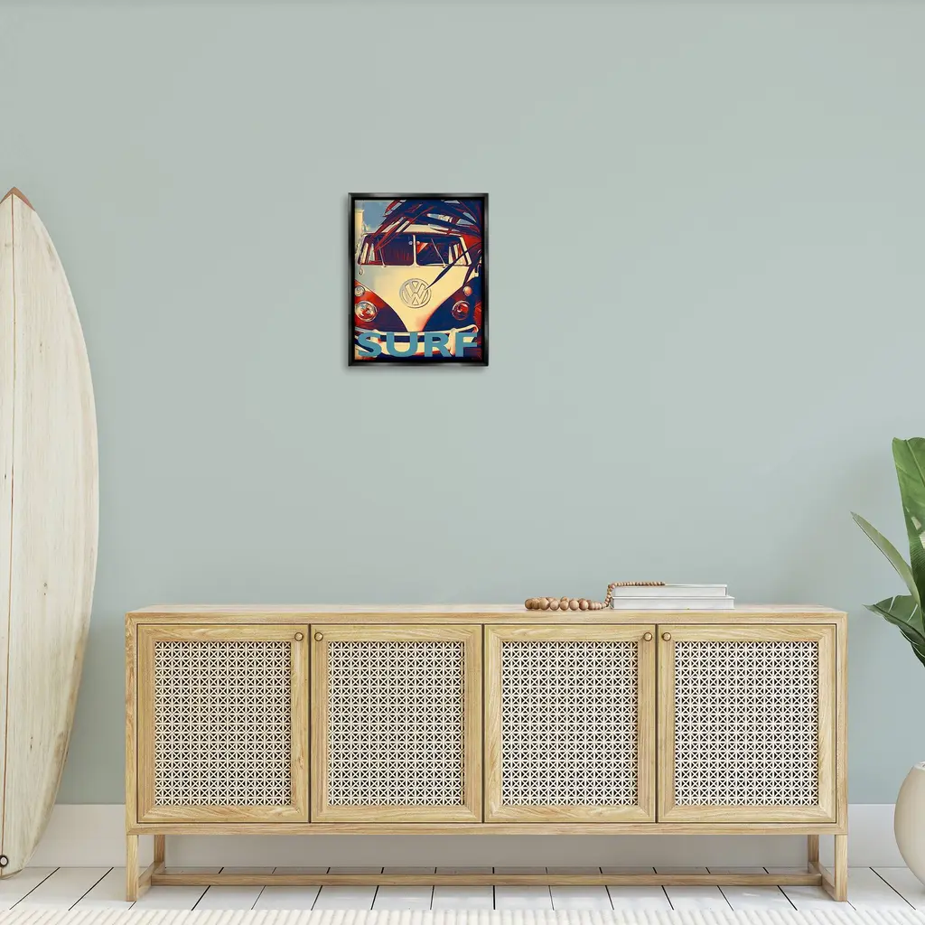 Stupell Vintage Surf Van Framed Floater Canvas Wall Art Design By Graffitee Studios - 17 X 21 - Black