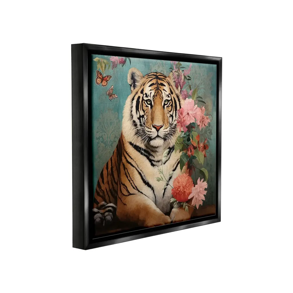 Stupell Vintage Tiger & Bouquet Framed Floater Canvas Wall Art Design By Lazar Studio - 25 X 25 - Black