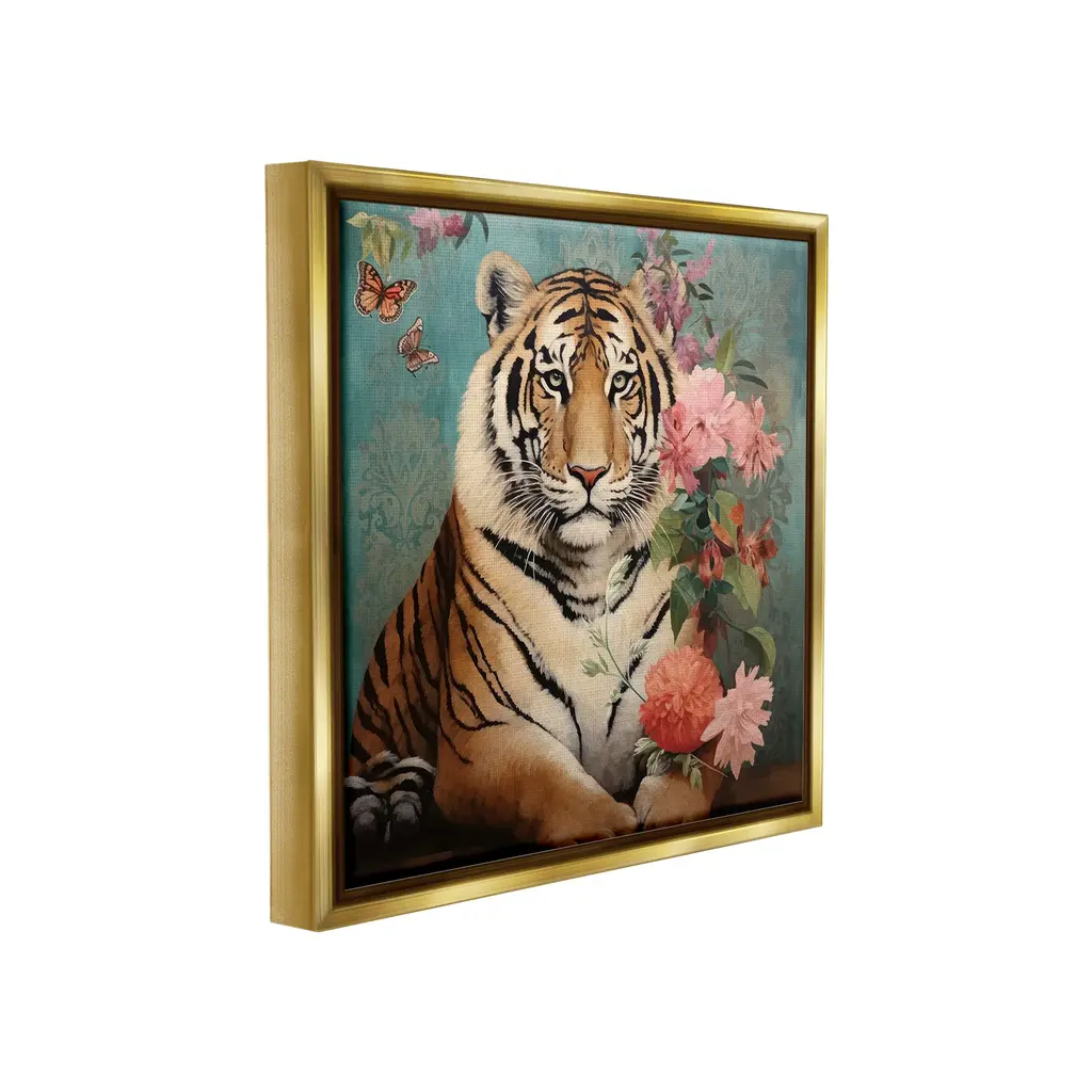 Stupell Vintage Tiger & Bouquet Framed Floater Canvas Wall Art Design By Lazar Studio - 25 X 25 - Gold
