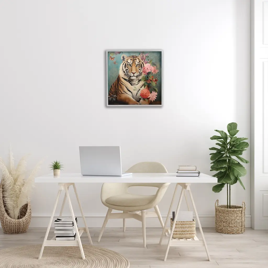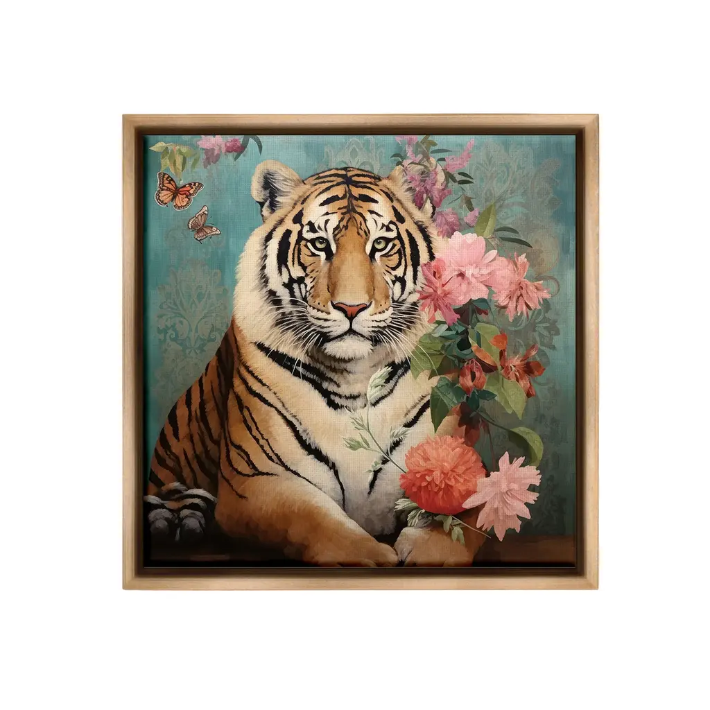 Stupell Vintage Tiger & Bouquet Framed Giclee Art Design By Lazar Studio - 24 X 24 - Grey
