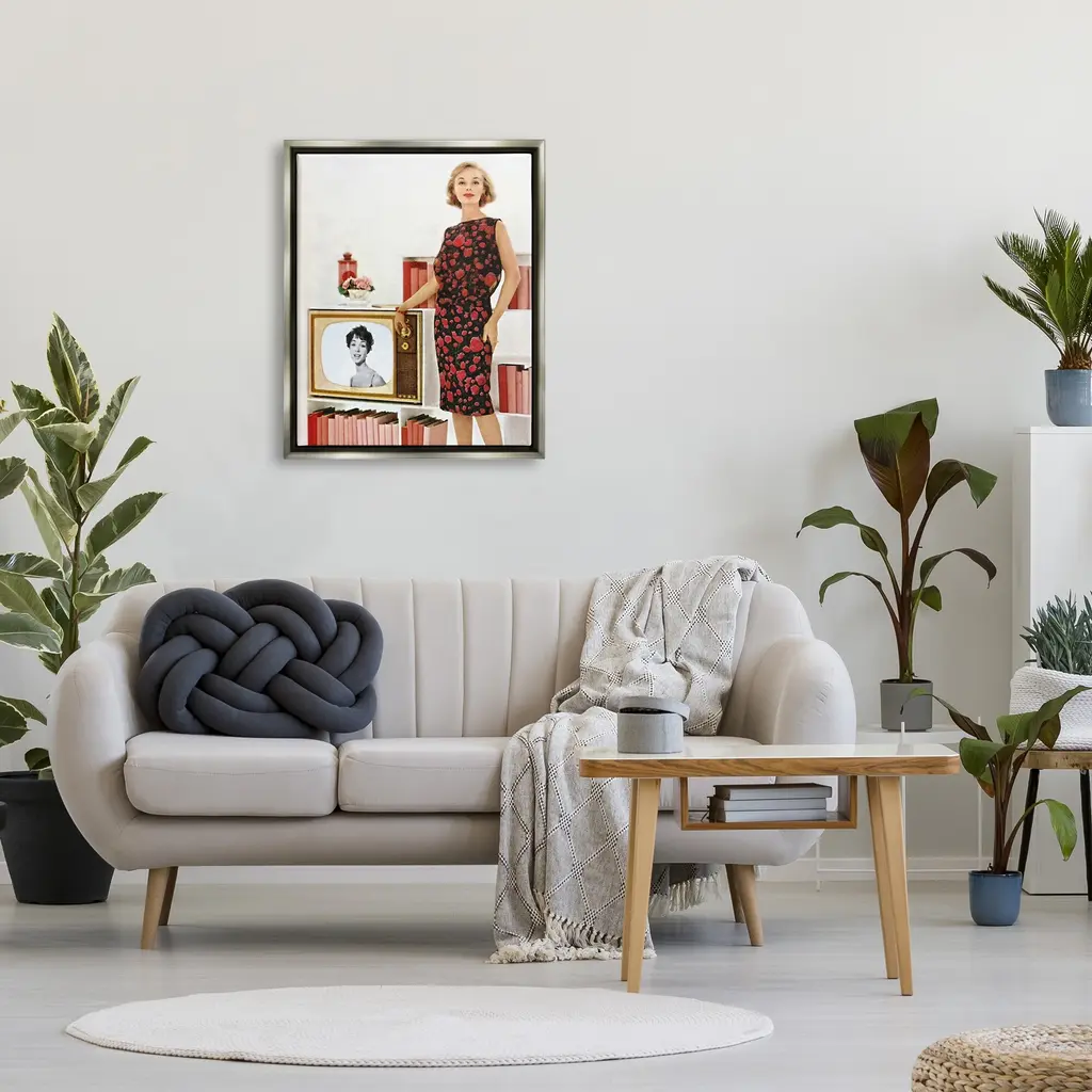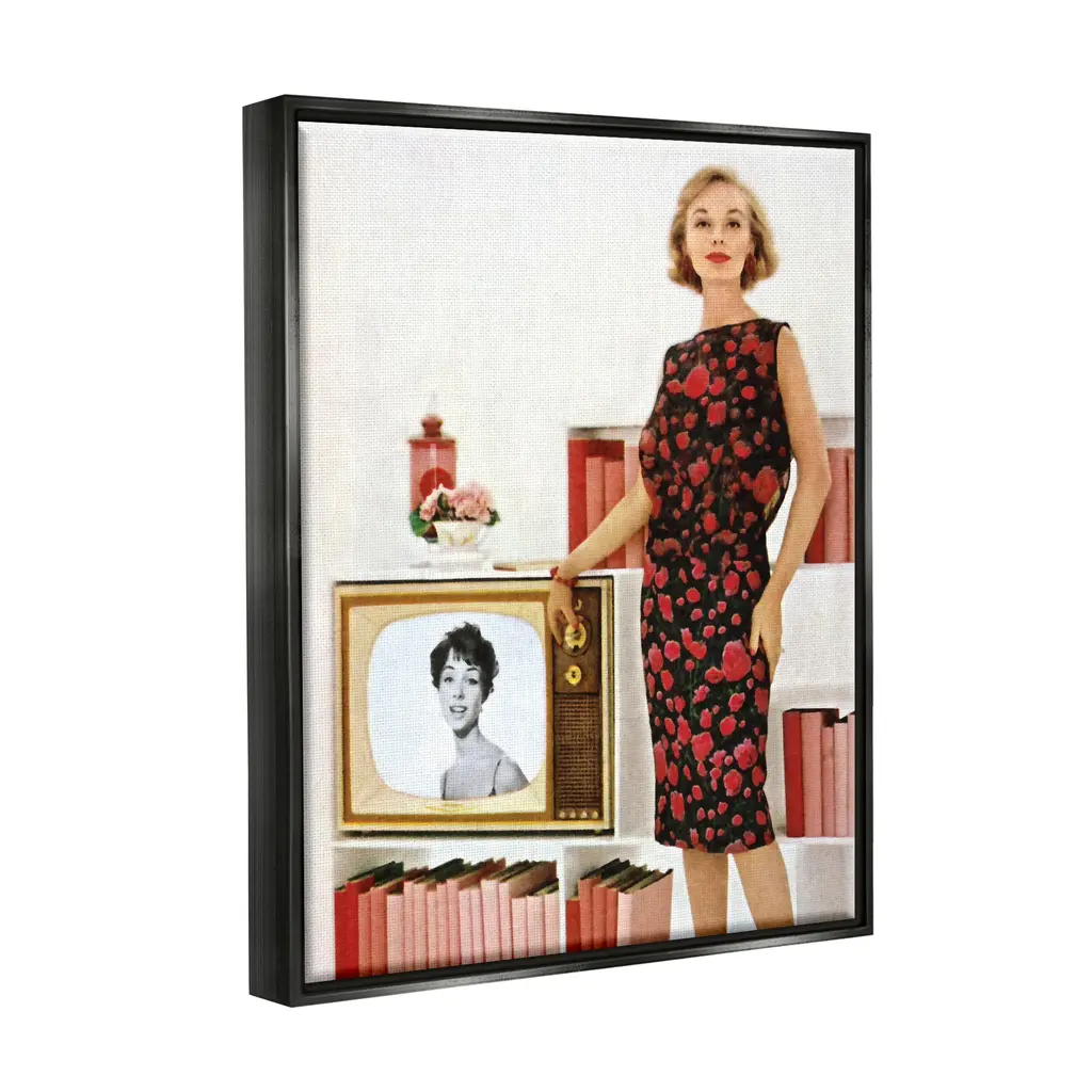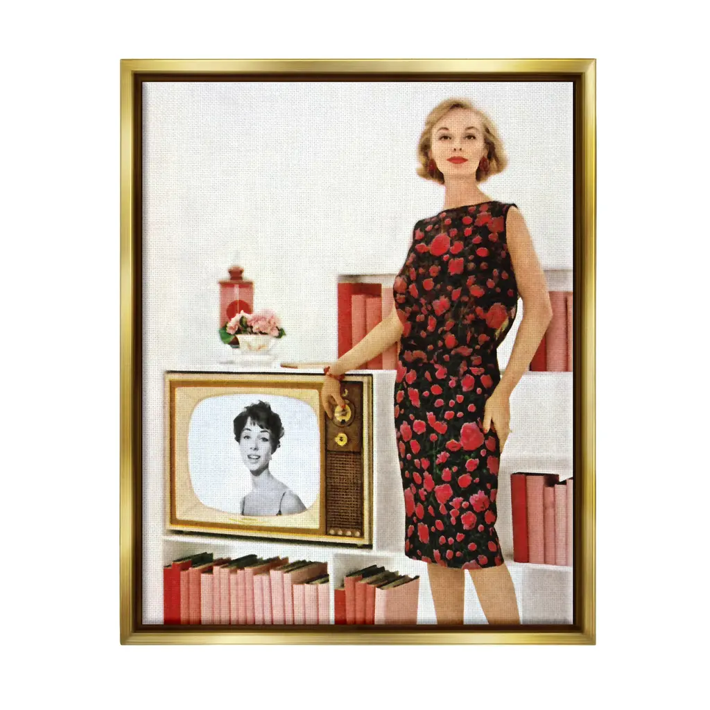Stupell Vintage Tv Advertisement Woman Framed Floater Canvas Wall Art By Kathy Alper - 24 X 30 - Gold