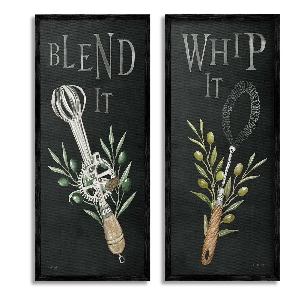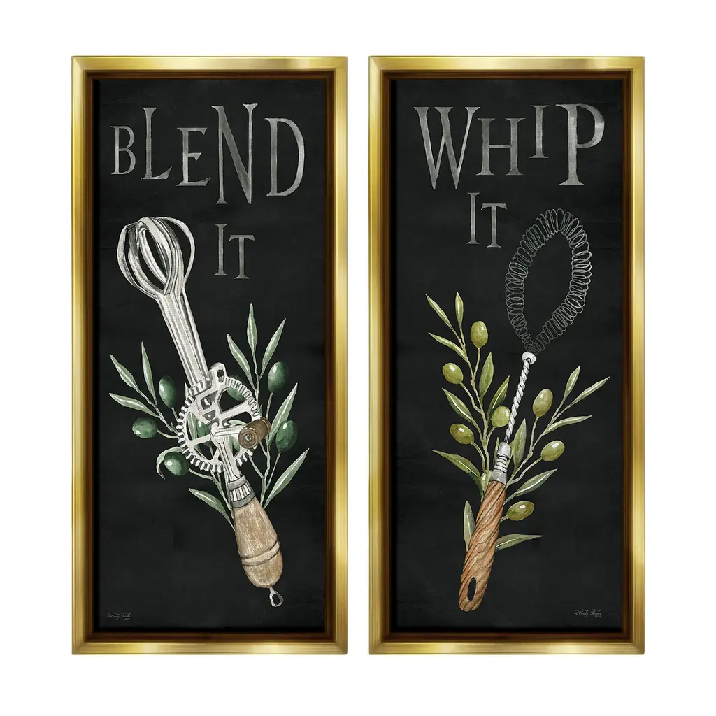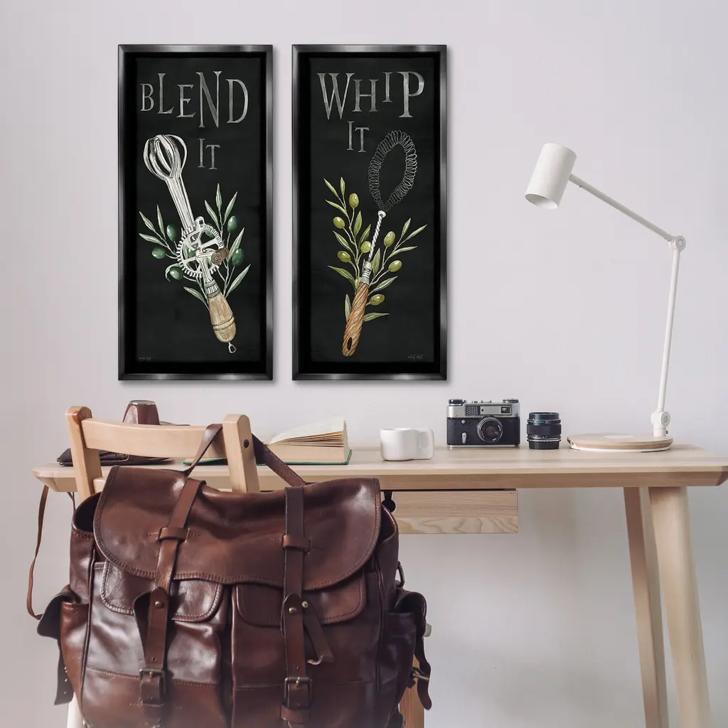 Elevate your home or office to the next level with Stupell Framed Floating Canvas Wall Art. Our premium hand-stretched canvas is mounted securely into a sturdy lightweight frame. The museum-style gap between the wrapped canvas and the box frame gives the illusion of floating artwork. Stupell Wall Art is made in the USA.Features: Dimensions: 2 Piece Set, Each Frame is 11 x 1.7 x 25Two Piece Floating Frame Canvas Products are available as 11"x25" or 14"x31" Panels. All Floating Frame Canvas Products have a 1.7" Depth.Wall Art is Ready to Hang with Hardware Free Hanging. No Installation required. For Easy Set Up Lean or Layer Artwork on Shelf or Against Wall. Artwork is Permently Fixed into the Frame.Our elevated 1.7" Thick Floating Frame is the perfect complement to our canvas style Wall Art. We use only the highest quality inks in house with industry leading printing solutions. Canvas is hand stretched over a durable wood foundation and then mounted securly into a Modern Box Frame. Made in the USA.Artwork Relates To: Kitchen, Herb, Vintage, Sign, Plant, Botanical, Leaf, Blend It, Whip ItDesign by Cindy Jacobs