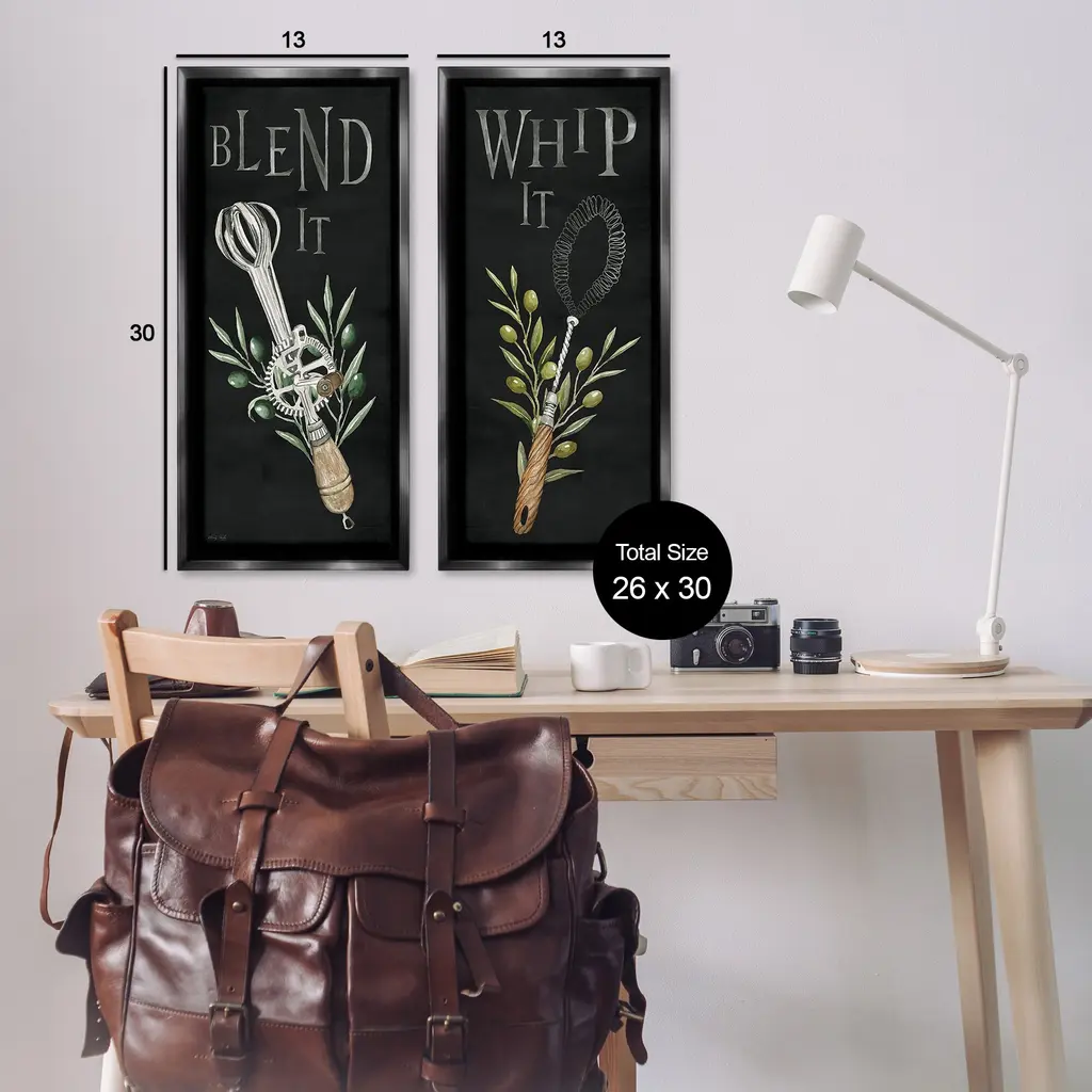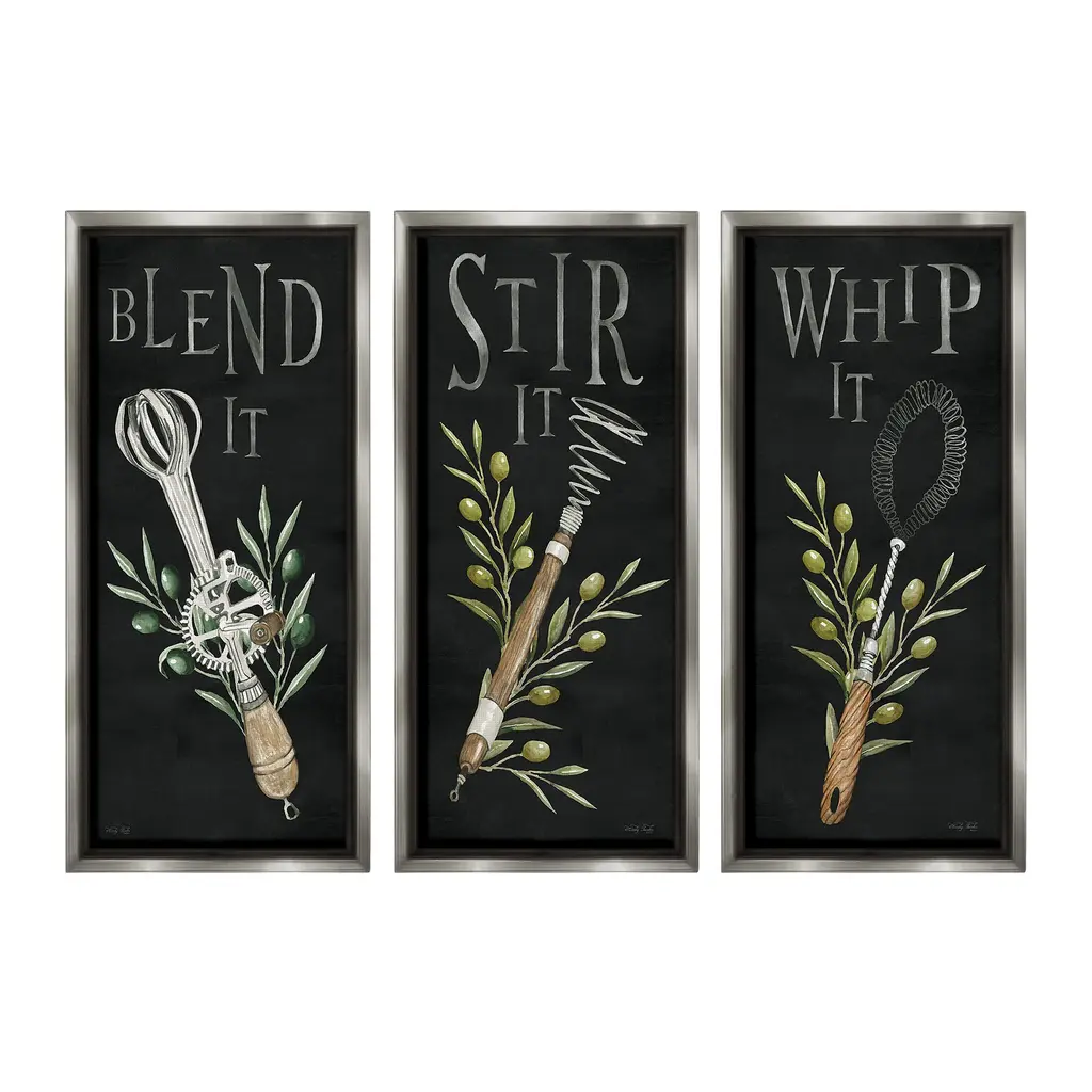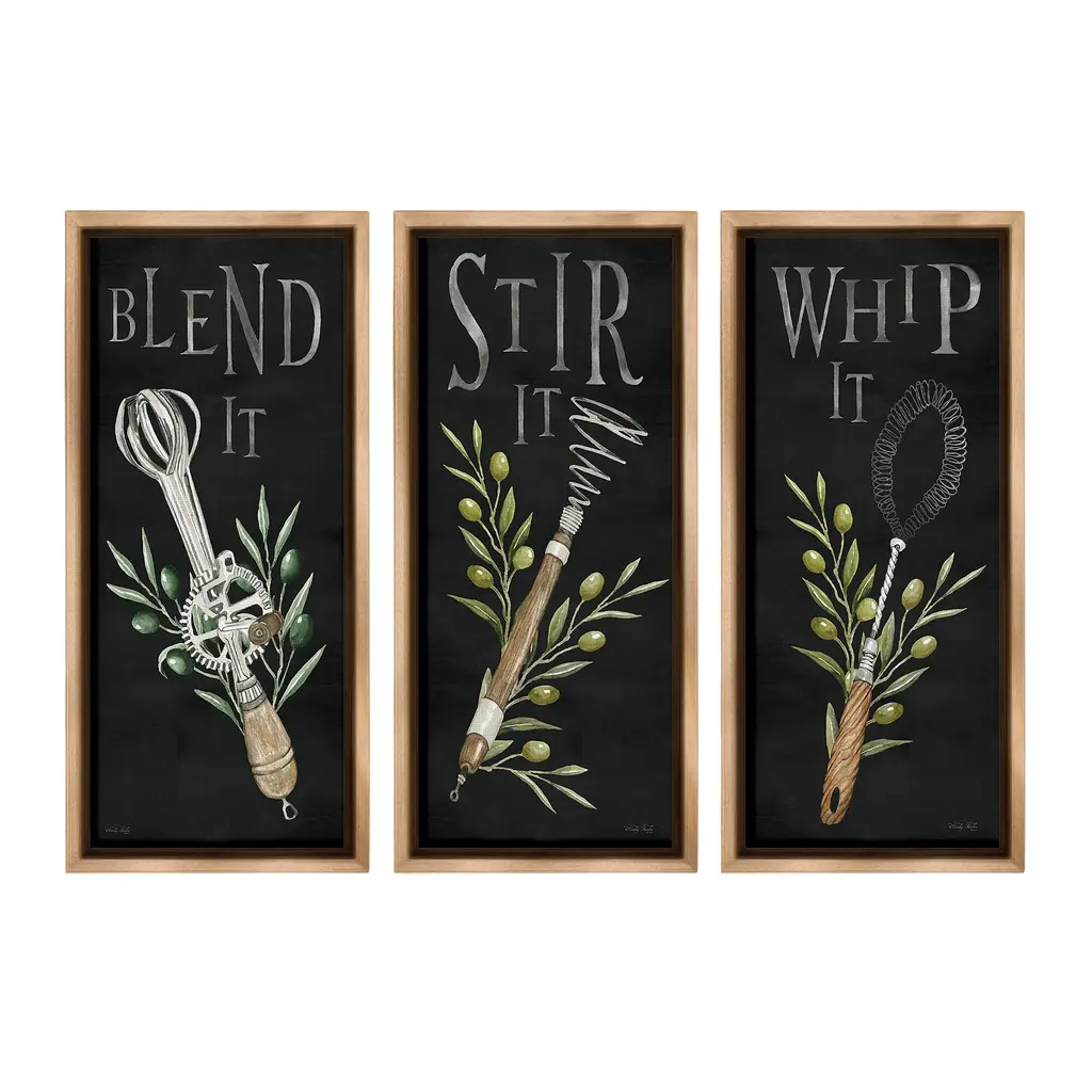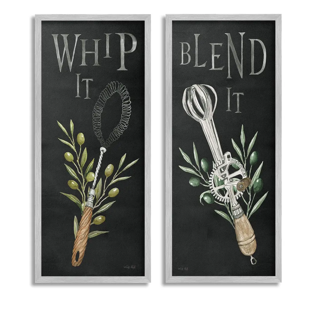 Elevate your home or office to the next level with Stupell Framed Floating Canvas Wall Art. Our premium hand-stretched canvas is mounted securely into a sturdy lightweight frame. The museum-style gap between the wrapped canvas and the box frame gives the illusion of floating artwork. Stupell Wall Art is made in the USA.Features: Dimensions: 2 Piece Set, Each Frame is 11 x 1.7 x 25Two Piece Floating Frame Canvas Products are available as 11"x25" or 14"x31" Panels. All Floating Frame Canvas Products have a 1.7" Depth.Wall Art is Ready to Hang with Hardware Free Hanging. No Installation required. For Easy Set Up Lean or Layer Artwork on Shelf or Against Wall. Artwork is Permently Fixed into the Frame.Our elevated 1.7" Thick Floating Frame is the perfect complement to our canvas style Wall Art. We use only the highest quality inks in house with industry leading printing solutions. Canvas is hand stretched over a durable wood foundation and then mounted securly into a Modern Box Frame. Made in the USA.Artwork Relates To: Kitchen, Herb, Vintage, Sign, Plant, Botanical, Leaf, Blend It, Whip ItDesign by Cindy Jacobs