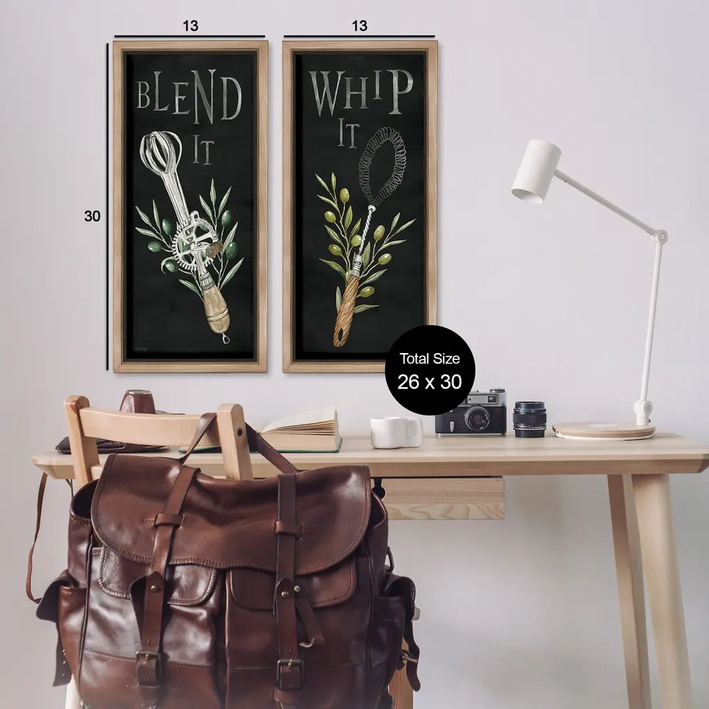 Elevate your home or office to the next level with Stupell Framed Floating Canvas Wall Art. Our premium hand-stretched canvas is mounted securely into a sturdy lightweight frame. The museum-style gap between the wrapped canvas and the box frame gives the illusion of floating artwork. Stupell Wall Art is made in the USA.Features: Dimensions: 2 Piece Set, Each Frame is 11 x 1.7 x 25Two Piece Floating Frame Canvas Products are available as 11"x25" or 14"x31" Panels. All Floating Frame Canvas Products have a 1.7" Depth.Wall Art is Ready to Hang with Hardware Free Hanging. No Installation required. For Easy Set Up Lean or Layer Artwork on Shelf or Against Wall. Artwork is Permently Fixed into the Frame.Our elevated 1.7" Thick Floating Frame is the perfect complement to our canvas style Wall Art. We use only the highest quality inks in house with industry leading printing solutions. Canvas is hand stretched over a durable wood foundation and then mounted securly into a Modern Box Frame. Made in the USA.Artwork Relates To: Kitchen, Herb, Vintage, Sign, Plant, Botanical, Leaf, Blend It, Whip ItDesign by Cindy Jacobs