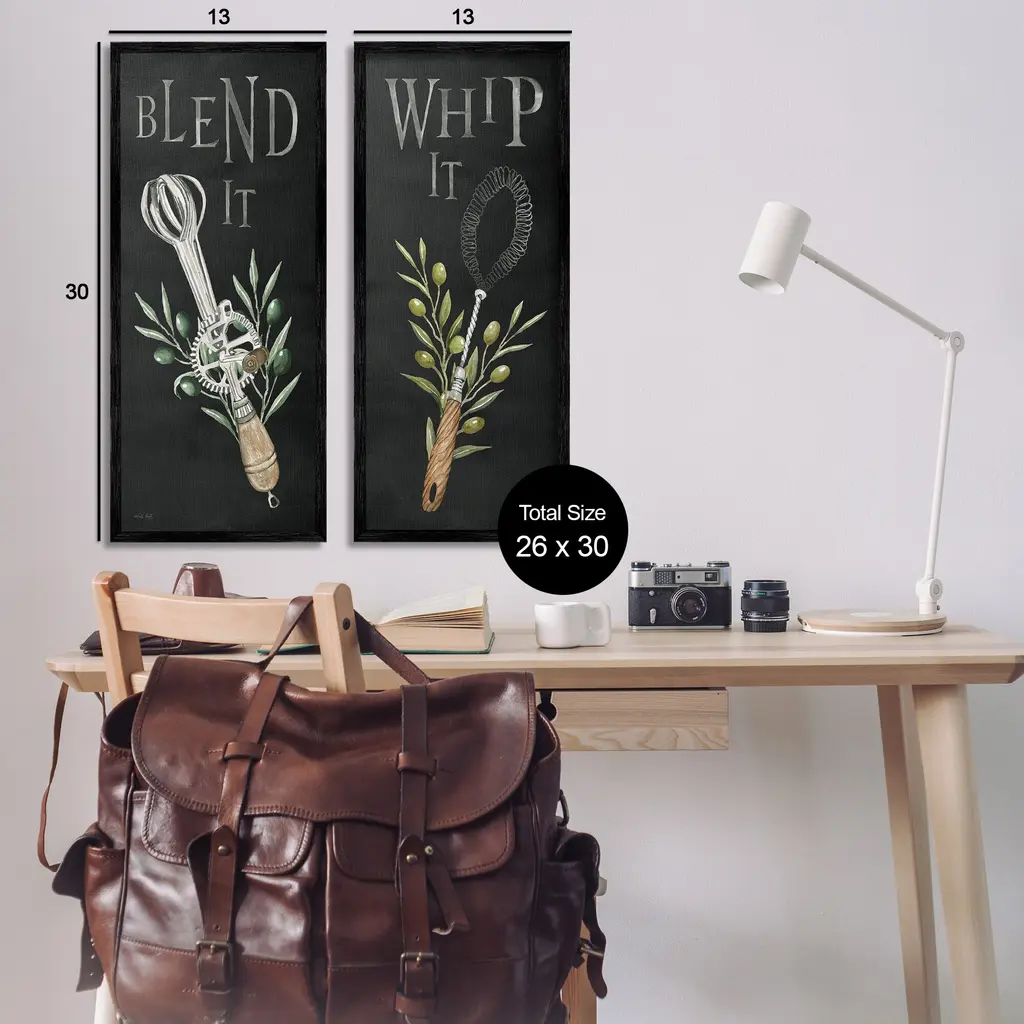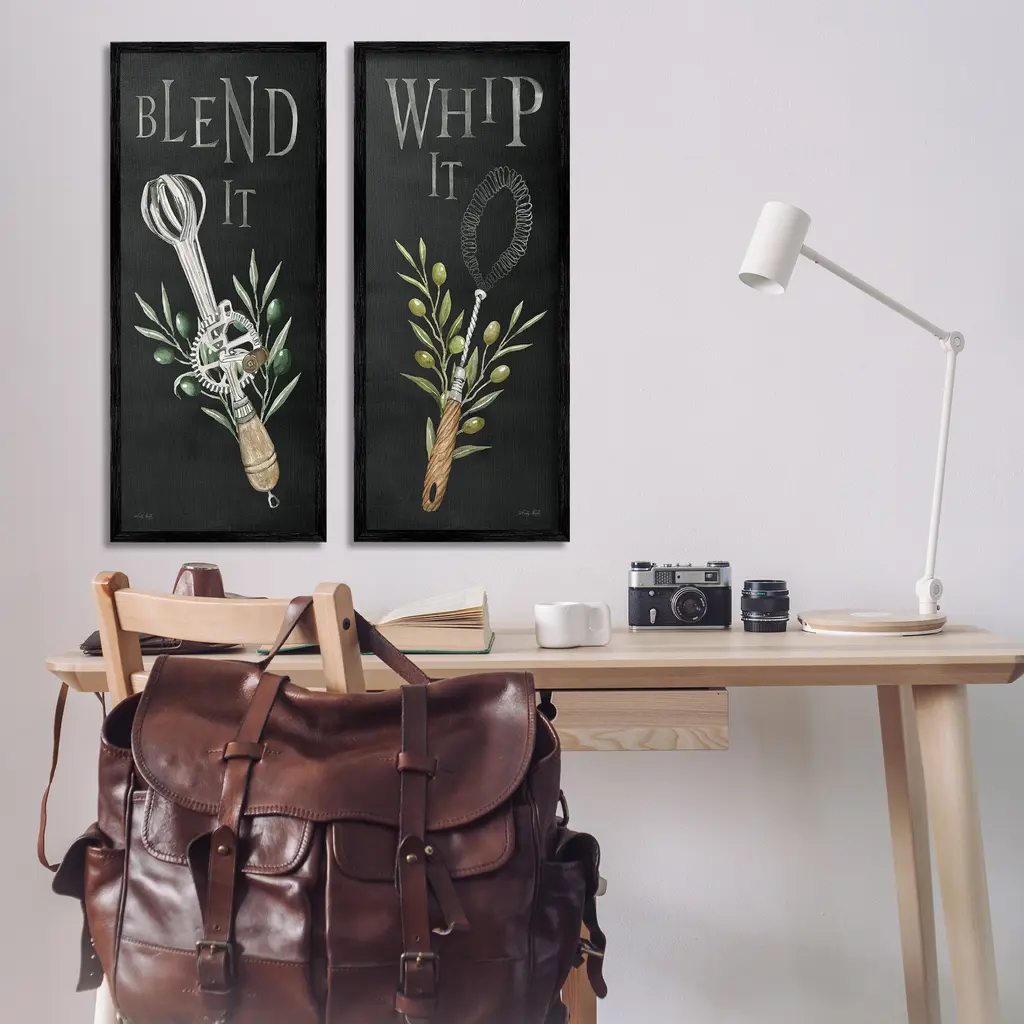 Fill any space in your home or office with our Framed Wall Art Sets. Our framed artwork is securely mounted into a 1.5-inch thick wood grain frame and ready to hang. Frames are available in three alluring styles: black, gray farmhouse and white. Stupell Wall Art is made in the USA.Features: Dimensions: 2 Piece Set, Each Panel is 10 x 1.5 x 24 FramedTwo Piece Framed Giclee Sets are available as 10"x24" or 13"x30" Panels. All Framed Giclee Panels have a 1.5" Depth. Wall Art is Ready to Hang with Hardware Free Hanging. No installation required. For Easy Set Up Lean or Layer Artwork on Shelf or Against Wall.Curated Wall Art Sets make it easy for you complete the theme for any room. Our giclée prints are carefully mounted on a durable MDF backing, and then perfectly finished in a 1.5 inch thick woodgrain frame. Mounted frame colors include black, gray farmhouse and white. Made In USA.Artwork Relates To: Kitchen, Herb, Vintage, Sign, Plant, Botanical, Leaf, Blend It, Whip ItDesign by Cindy Jacobs