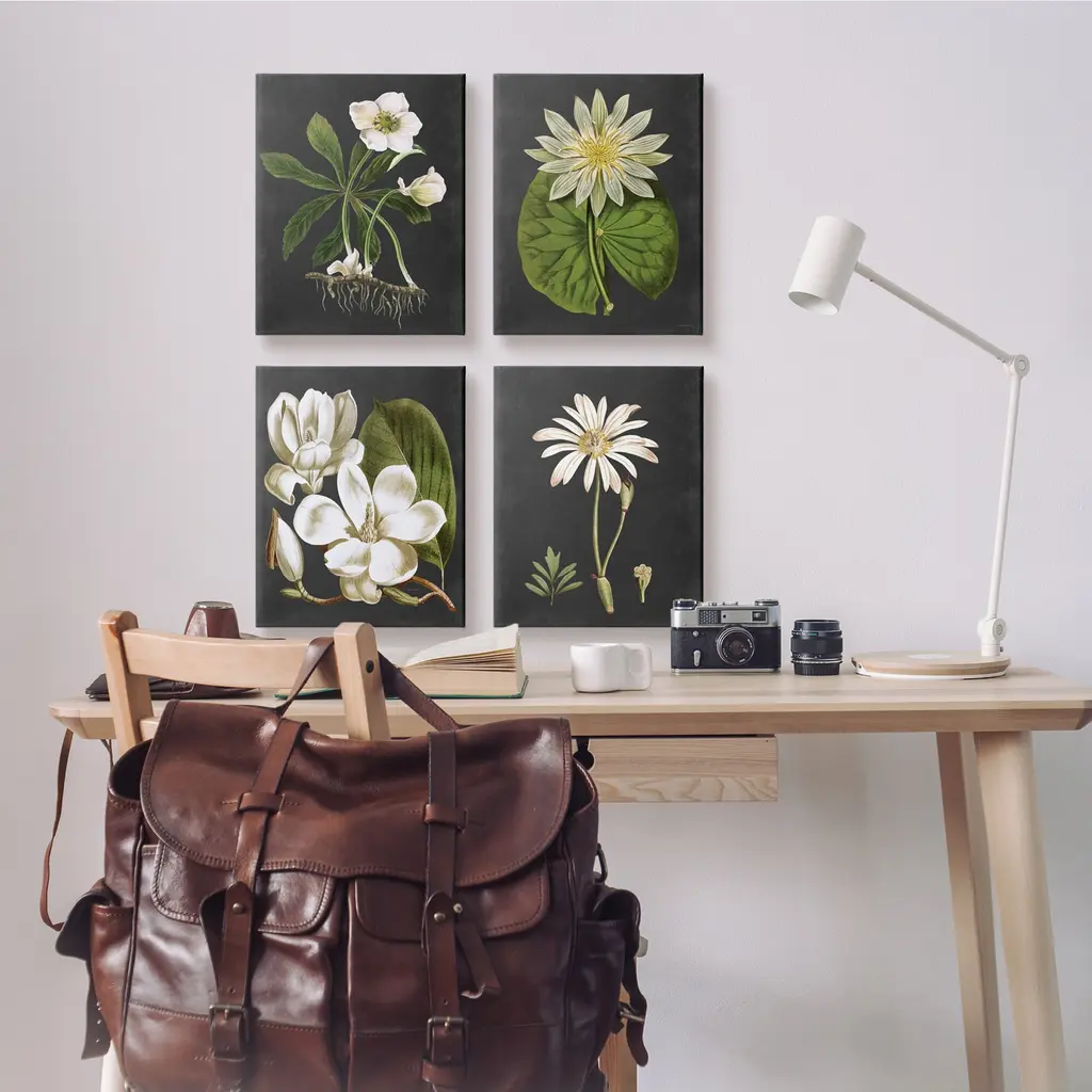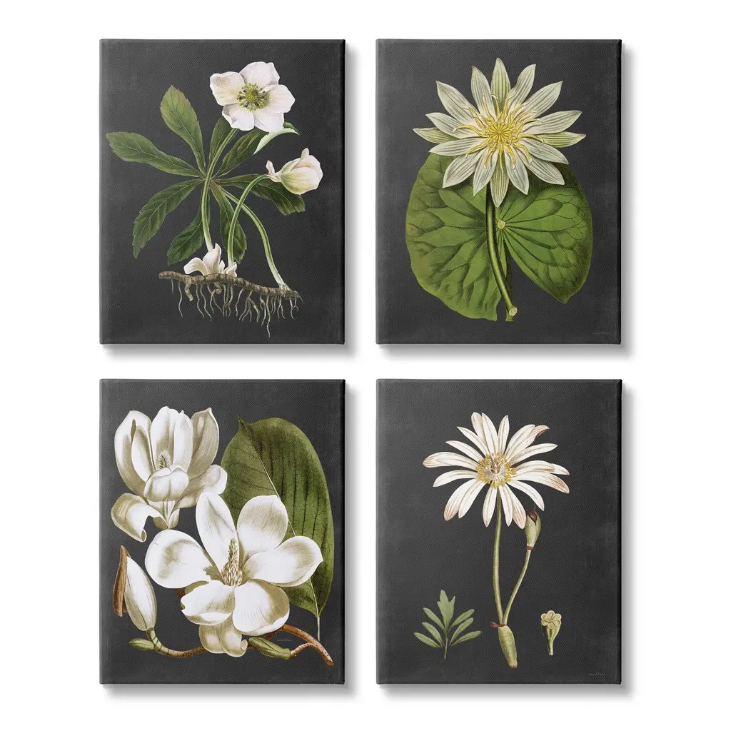 Stupell Vintage White Florals Over Distressed Grey Lotus Daisies 4Pc Multi Piece Canvas Wall Art Set, 16 X 20 - Green - 16 X 20