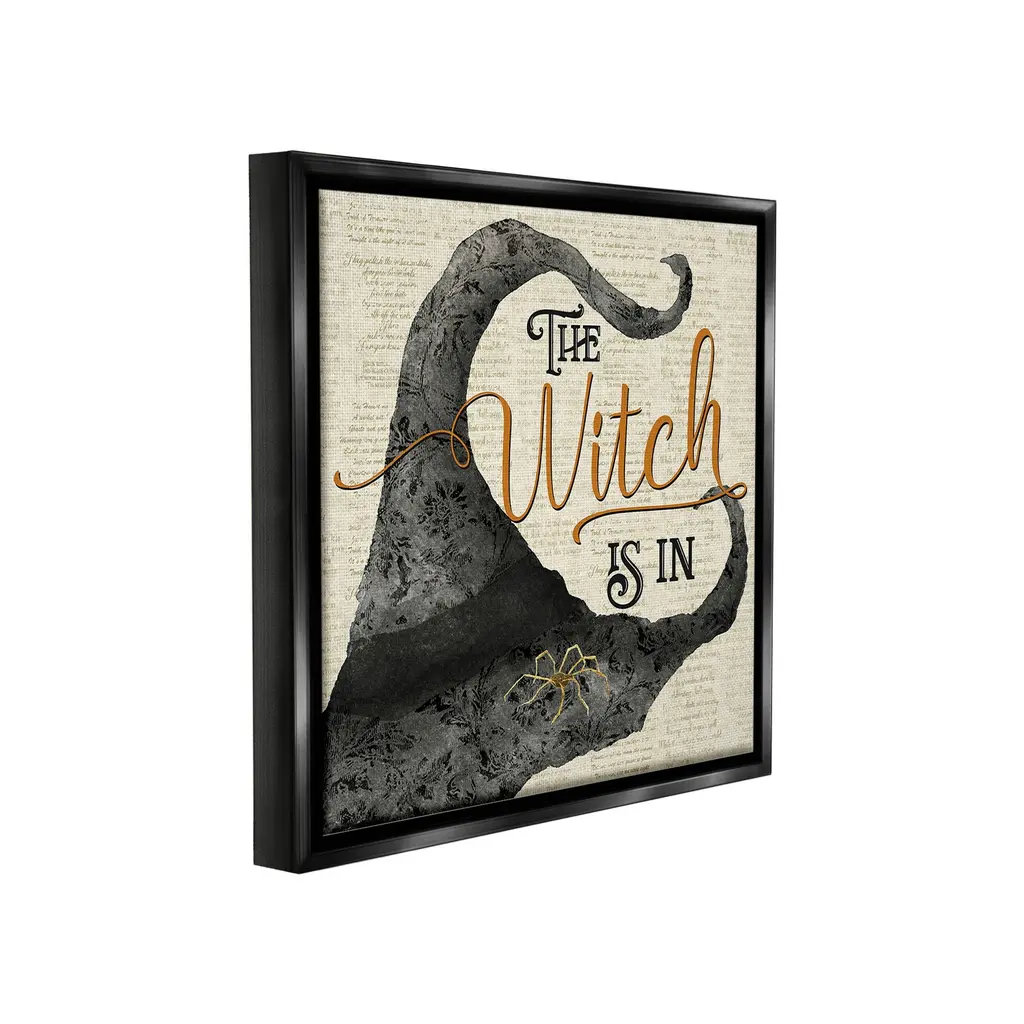 Elevate your home or office to the next level with Stupell Framed Floating Canvas Wall Art. Our premium hand-stretched canvas is mounted securely into a sturdy lightweight frame. The museum-style gap between the wrapped canvas and the box frame gives the illusion of floating artwork. Stupell Wall Art is made in the USA.Features: Dimensions: 18 x 1.7 x 18 Frame, 17 x 1.5 x 17 Canvas ArtFloating Frame Canvas Products are available in sizes 18"x18" and 25"x25". All Floating Frame Canvas Products have a 1.7" Depth.Wall Art is Ready to Hang with Hardware Free Hanging. No Installation required. For Easy Set Up Lean or Layer Artwork on Shelf or Against Wall. Artwork is Permently Fixed into the Frame.Our elevated 1.7" Thick Floating Frame is the perfect complement to our canvas style Wall Art. We use only the highest quality inks in house with industry leading printing solutions. Canvas is hand stretched over a durable wood foundation and then mounted securly into a Modern Box Frame. Made in the USA.Artwork Relates To: Witch, Broom, Halloween, Vintage, Rustic, Spider, Pattern, The Witch Is InDesign by Deane Beesley