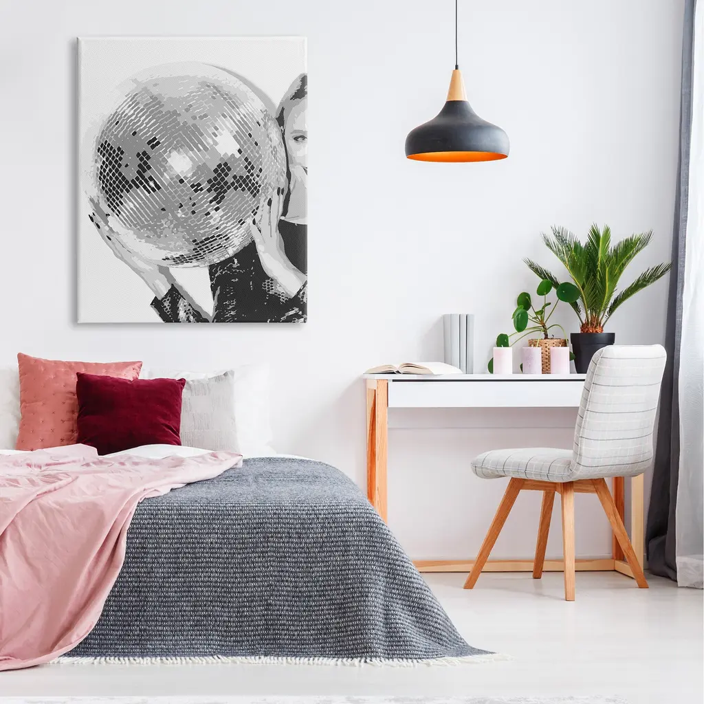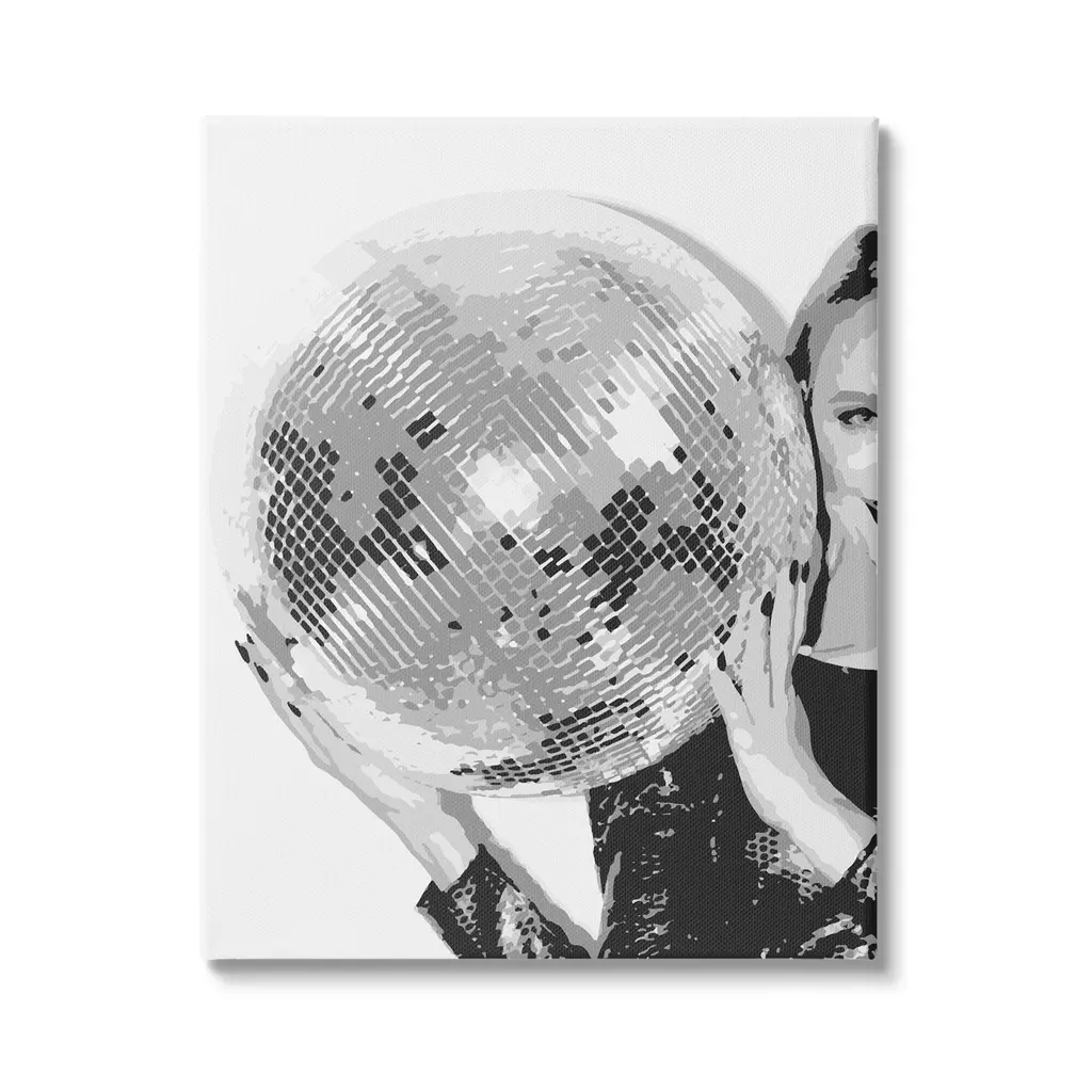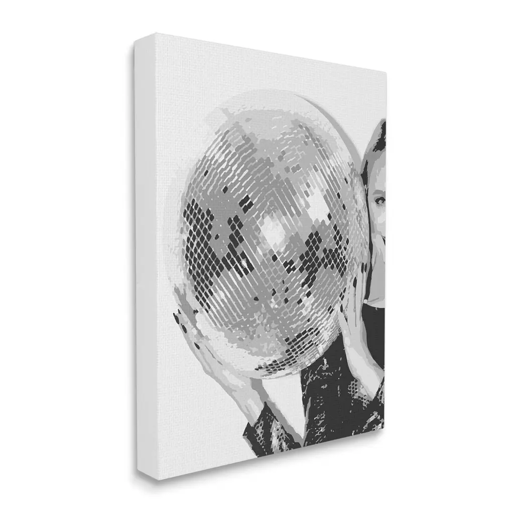 We create our stretched canvas to the highest standards. Using only the highest quality inks and canvas on Mimaki printers, we hand-cut and stretch each piece over a 1.5-inch thick wooden frame for hanging. As a result, the art comes ready to hang on the sturdy ledge with no installation required. Stupell Wall Art is made in the USA.Features: Dimensions: 16 x 1.5 x 20 InchesStretched Canvas Sizes Include Standard: 16 x 1.5 x 20 Large: 20 x 1.5 x 30 X-Large: 30 x 1.5 x 40 Oversized: 36 x 1.5 x 48Wall Art is Ready to Hang - No Installation or Hardware Needed. For Easy Set Up Lean or Layer Artwork on Shelf or Against Wall.Our stretched canvas is created with the highest standards. We use only the highest quality inks and canvas on our in house Mimaki printers, and then hand cut and stretch each piece over a 1.5 inch thick wooden frame for hanging. Made In USA.Artwork Relates To: Disco Ball, Retro, Bold, Person, WomanDesign by Lil' Rue