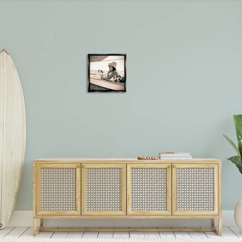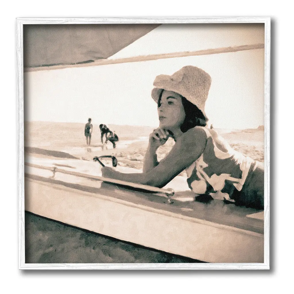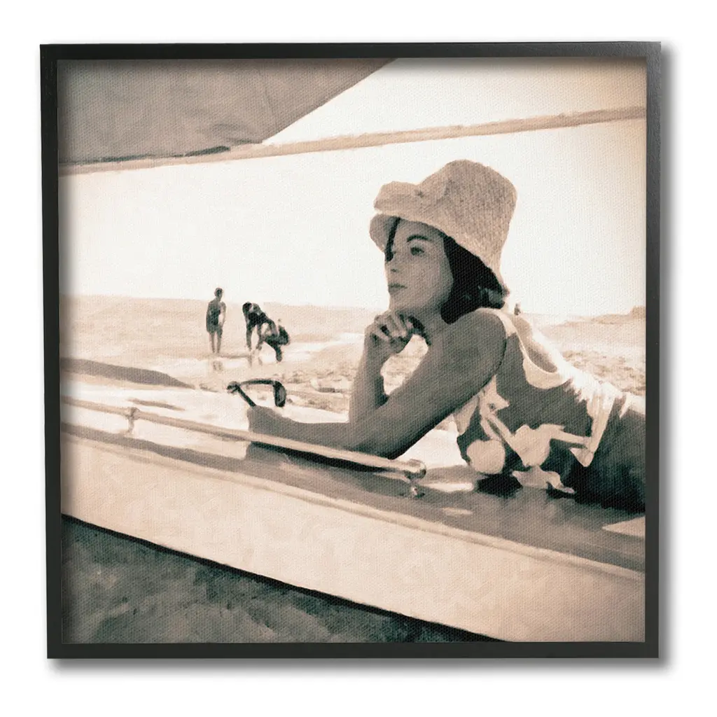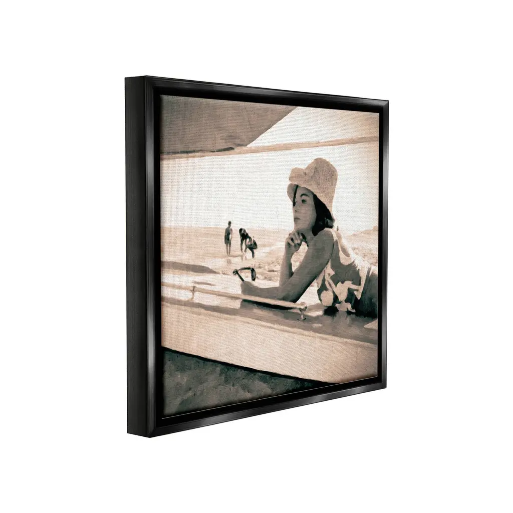 Elevate your home or office to the next level with Stupell Framed Floating Canvas Wall Art. Our premium hand-stretched canvas is mounted securely into a sturdy lightweight frame. The museum-style gap between the wrapped canvas and the box frame gives the illusion of floating artwork. Stupell Wall Art is made in the USA.Features: Dimensions: 18 x 1.7 x 18 Frame, 17 x 1.5 x 17 Canvas ArtFloating Frame Canvas Products are available in sizes 18"x18" and 25"x25". All Floating Frame Canvas Products have a 1.7" Depth.Wall Art is Ready to Hang with Hardware Free Hanging. No Installation required. For Easy Set Up Lean or Layer Artwork on Shelf or Against Wall. Artwork is Permently Fixed into the Frame.Our elevated 1.7" Thick Floating Frame is the perfect complement to our canvas style Wall Art. We use only the highest quality inks in house with industry leading printing solutions. Canvas is hand stretched over a durable wood foundation and then mounted securly into a Modern Box Frame. Made in the USA.Artwork Relates To: Beach, Shore, Nautical, Woman, Sunbathing, Person, Abstract, VintageDesign by GraffiTee Studios