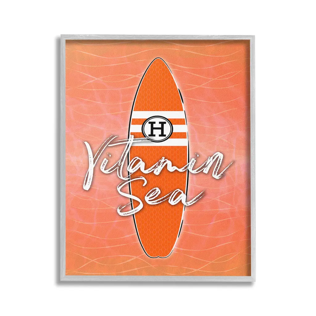 Add dimension to any room with our textured Framed Giclee Artwork. Our framed artwork is securely mounted into a 1.5-inch thick wood grain frame and ready to hang. Frames are available in three alluring styles: black, gray farmhouse and white. In addition, you should check out our oversized options if you want a statement piece. Stupell Wall Art is made in the USA.Features: Dimensions: 11 x 1.5 x 14 FramedFramed Giclee Products are available in the sizes 11"x14", 16"x20" or 24"x30". All Framed Giclee Products have a 1.5" Depth. Wall Art is Ready to Hang with Hardware Free Hanging. No installation required. For Easy Set Up Lean or Layer Artwork on Shelf or Against Wall.Our giclée prints are carefully mounted on a durable MDF backing, and then perfectly finished in a 1.5 inch thick woodgrain frame. Mounted frame colors include black, gray farmhouse and white. Made In USA.Artwork Relates To: Glam, Fashion, Pattern, Surf, Nautical, Surfboard, Logo, Vitamin SeaDesign by Martina Pavlova