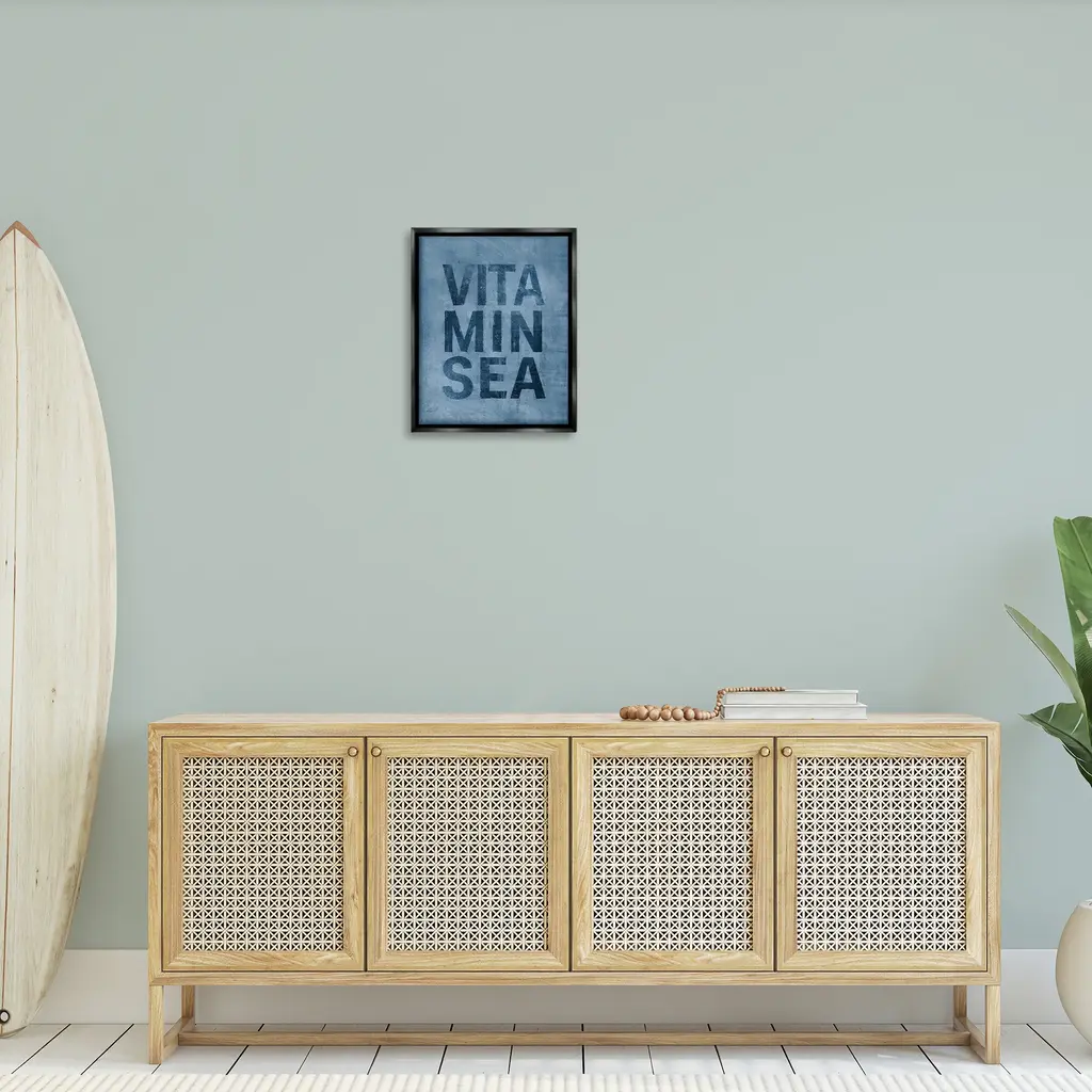 Stupell Vitamin Sea Phrase Framed Floater Canvas Wall Art Design By Victoria Barnes - 17 X 21 - Black