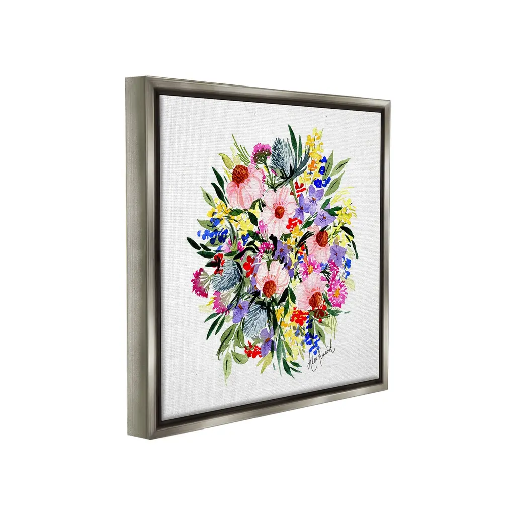 Elevate your home or office to the next level with Stupell Framed Floating Canvas Wall Art. Our premium hand-stretched canvas is mounted securely into a sturdy lightweight frame. The museum-style gap between the wrapped canvas and the box frame gives the illusion of floating artwork. Stupell Wall Art is made in the USA.Features: Dimensions: 18 x 1.7 x 18 Frame, 17 x 1.5 x 17 Canvas ArtFloating Frame Canvas Products are available in sizes 18"x18" and 25"x25". All Floating Frame Canvas Products have a 1.7" Depth.Wall Art is Ready to Hang with Hardware Free Hanging. No Installation required. For Easy Set Up Lean or Layer Artwork on Shelf or Against Wall. Artwork is Permently Fixed into the Frame.Our elevated 1.7" Thick Floating Frame is the perfect complement to our canvas style Wall Art. We use only the highest quality inks in house with industry leading printing solutions. Canvas is hand stretched over a durable wood foundation and then mounted securly into a Modern Box Frame. Made in the USA.Artwork Relates To: Pattern, Floral, Plant, Flower, Vivid, Botanical, BouquetDesign by Alexandria Gilbert Kincaid