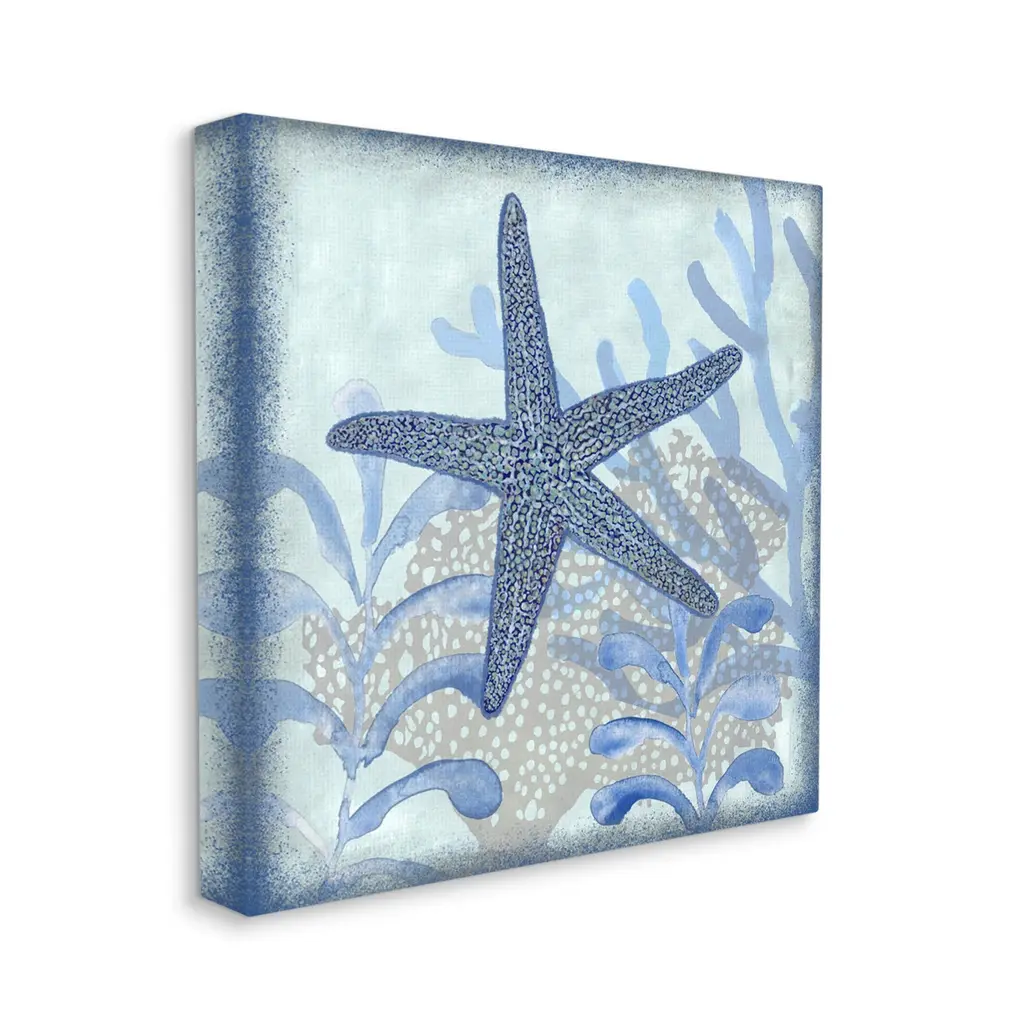 Proudly made in the USA, Our stretched canvas is created with the highest standards. We use only the highest quality inks and canvas on our in house Mimaki printers, and then hand cut and stretch each piece over a 1.5 inch thick wooden frame for hanging. The art comes ready to hang with no installation required.Features: Dimensions: 17 x 1.5 x 17 InchesStretched Canvas Sizes Include Standard: 17 x 1.5 x 17 Large: 24 x 1.5 x 24 X-Large: 30 x 1.5 x 30 Oversized: 36 x 1.5 x 36Wall Art is Ready to Hang - No Installation or Hardware Needed. For Easy Set Up Lean or Layer Artwork on Shelf or Against Wall.Our stretched canvas is created with the highest standards. We use only the highest quality inks and canvas on our in house Mimaki printers, and then hand cut and stretch each piece over a 1.5 inch thick wooden frame for hanging. Made In USA.Artwork Relates To: Sea Life, Animal, Starfish, Invertebrate, Underwater, Aquatic, CoralDesign by Erica Christopher