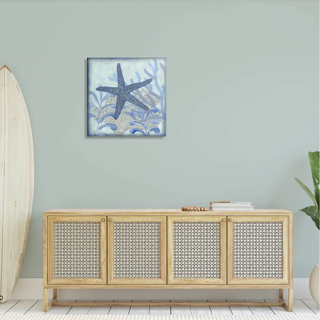 Proudly made in the USA, Our stretched canvas is created with the highest standards. We use only the highest quality inks and canvas on our in house Mimaki printers, and then hand cut and stretch each piece over a 1.5 inch thick wooden frame for hanging. The art comes ready to hang with no installation required.Features: Dimensions: 17 x 1.5 x 17 InchesStretched Canvas Sizes Include Standard: 17 x 1.5 x 17 Large: 24 x 1.5 x 24 X-Large: 30 x 1.5 x 30 Oversized: 36 x 1.5 x 36Wall Art is Ready to Hang - No Installation or Hardware Needed. For Easy Set Up Lean or Layer Artwork on Shelf or Against Wall.Our stretched canvas is created with the highest standards. We use only the highest quality inks and canvas on our in house Mimaki printers, and then hand cut and stretch each piece over a 1.5 inch thick wooden frame for hanging. Made In USA.Artwork Relates To: Sea Life, Animal, Starfish, Invertebrate, Underwater, Aquatic, CoralDesign by Erica Christopher