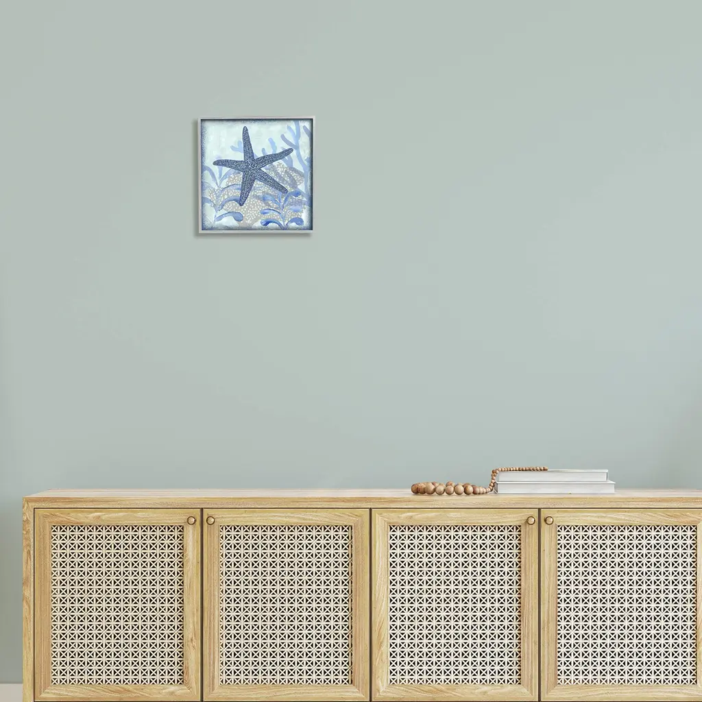 Our Framed Giclee Wall Art adds a touch of class to any space in your home or office. Frames are available in three alluring styles: black, gray farmhouse and white. Our textured artwork will add more depth and dimension to any space. Each piece is mounted with a 1.5 inch thick wood grain frame that is ready to hang! Looking for a statement piece? We have oversized artwork available.Features: Dimensions: 12 x 1.5 x 12 FramedFramed Giclee Sizes Include Standard: 12 x 1.5 x 12 Large: 17 x 1.5 x 17 Oversized: 24 x 1.5 x 24Wall Art is Ready to Hang - No Installation or Hardware Needed. For Easy Set Up Lean or Layer Artwork on Shelf or Against Wall.Our giclée prints are carefully mounted on a durable MDF backing, and then perfectly finished in a 1.5 inch thick woodgrain frame. Mounted frame colors include black, gray farmhouse and white. Made In USA.Artwork Relates To: Sea Life, Animal, Starfish, Invertebrate, Underwater, Aquatic, CoralDesign by Erica Christopher