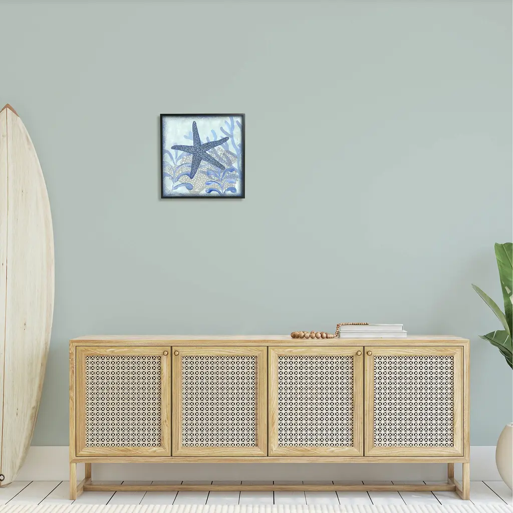 Our Framed Giclee Wall Art adds a touch of class to any space in your home or office. Frames are available in three alluring styles: black, gray farmhouse and white. Our textured artwork will add more depth and dimension to any space. Each piece is mounted with a 1.5 inch thick wood grain frame that is ready to hang! Looking for a statement piece? We have oversized artwork available.Features: Dimensions: 12 x 1.5 x 12 FramedFramed Giclee Sizes Include Standard: 12 x 1.5 x 12 Large: 17 x 1.5 x 17 Oversized: 24 x 1.5 x 24Wall Art is Ready to Hang - No Installation or Hardware Needed. For Easy Set Up Lean or Layer Artwork on Shelf or Against Wall.Our giclée prints are carefully mounted on a durable MDF backing, and then perfectly finished in a 1.5 inch thick woodgrain frame. Mounted frame colors include black, gray farmhouse and white. Made In USA.Artwork Relates To: Sea Life, Animal, Starfish, Invertebrate, Underwater, Aquatic, CoralDesign by Erica Christopher