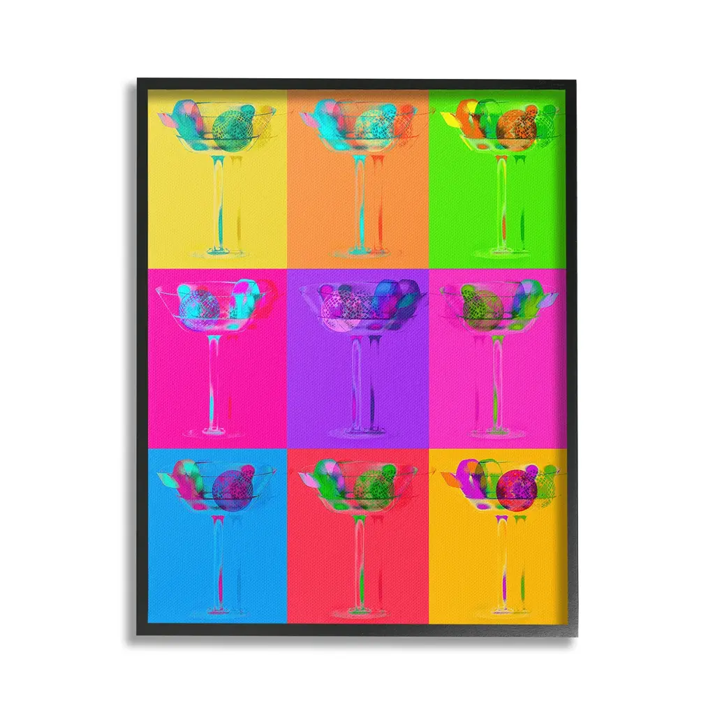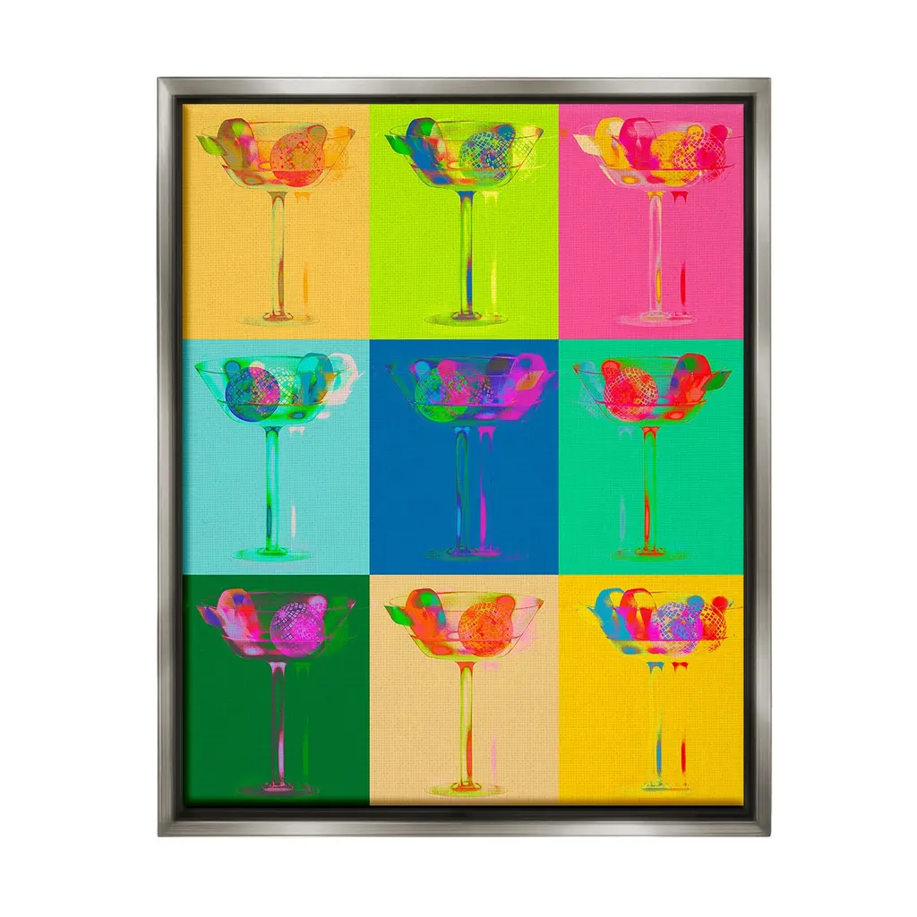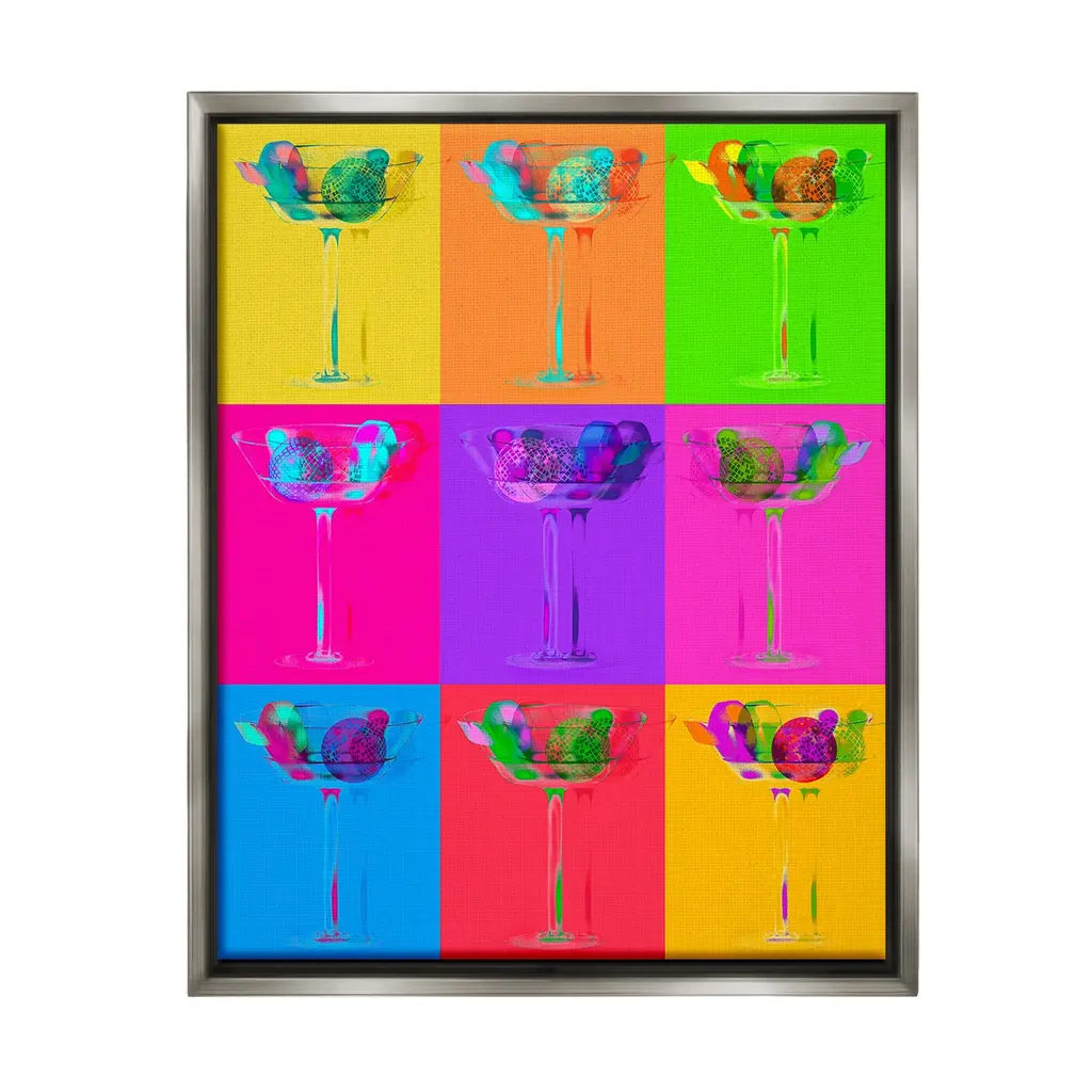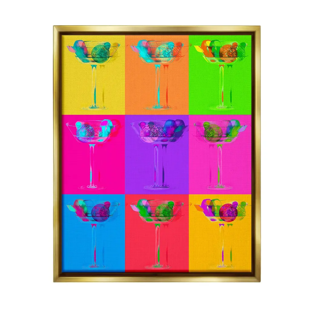 Elevate your home or office to the next level with Stupell Framed Floating Canvas Wall Art. Our premium hand-stretched canvas is mounted securely into a sturdy lightweight frame. The museum-style gap between the wrapped canvas and the box frame gives the illusion of floating artwork. Stupell Wall Art is made in the USA.Features: Dimensions: 17 x 1.7 x 21 Frame, 16 x 1.5 x 20 Canvas ArtFloating Frame Canvas Products are available in sizes 17"x21" and 25"x31". All Floating Frame Canvas Products have a 1.7" Depth.Wall Art is Ready to Hang with Hardware Free Hanging. No Installation required. For Easy Set Up Lean or Layer Artwork on Shelf or Against Wall. Artwork is Permently Fixed into the Frame.Our elevated 1.7" Thick Floating Frame is the perfect complement to our canvas style Wall Art. We use only the highest quality inks in house with industry leading printing solutions. Canvas is hand stretched over a durable wood foundation and then mounted securly into a Modern Box Frame. Made in the USA.Artwork Relates To: Dance, Music, Disco, Pattern, Abstract, Shape, Modern, Glam, Cocktail, Martini, Pop StyleDesign by Lil' Rue