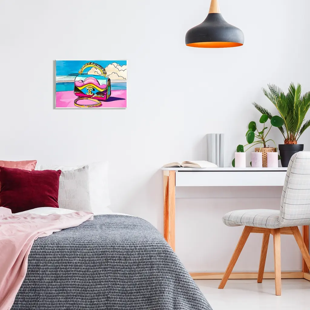 Our wall plaques start as high-quality lithograph prints mounted on durable 0.5-inch thick MDF wood. Each piece is hand finished and comes with a fresh layer of white foil on the sides to give it a crisp, clean look. Plaques arrive ready to hang without installation and come with removable plastic corners to keep them from damage in transit. Stupell Wall Art is made in the USA.Features: Dimensions: 15 x 0.5 x 10 InchesWall Plaque Sizes Include Standard: 15 x 0.5 x 10 Oversized: 19 x 0.5 x 13Wall Art is Ready to Hang with Hardware Free Hanging. No installation required. For Easy Set Up Lean or Layer Artwork on Shelf or Against Wall.All of our wall plaques start off as high quality lithograph prints that are then mounted on durable 0.5 inch thick MDF wood. Each piece is hand finished and comes with a fresh layer of foil on the sides to give it a crisp clean look. Made In USA.Artwork Relates To: Bag, Handbag, Purse, Fashion, Glam, Beach, Ocean, LandscapeDesign by Amelia Noyes