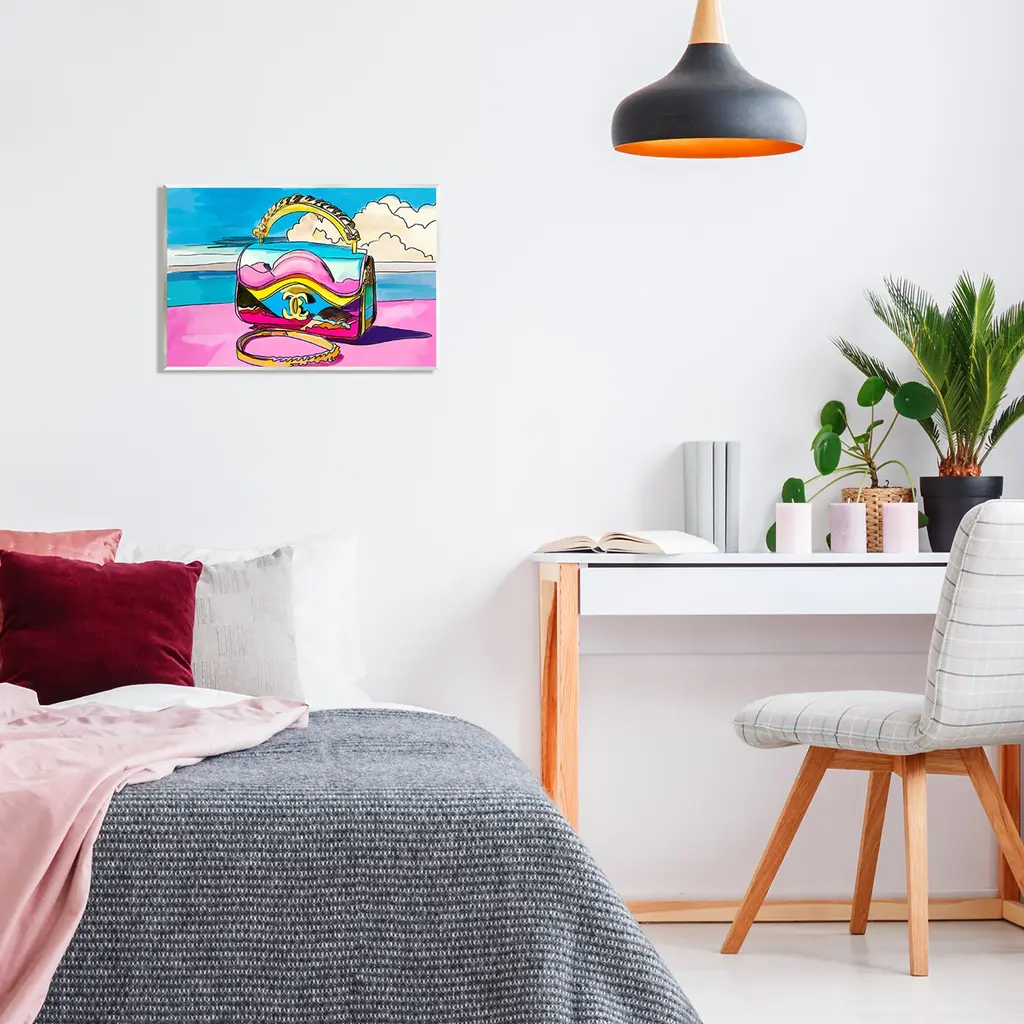Our wall plaques start as high-quality lithograph prints mounted on durable 0.5-inch thick MDF wood. Each piece is hand finished and comes with a fresh layer of white foil on the sides to give it a crisp, clean look. Plaques arrive ready to hang without installation and come with removable plastic corners to keep them from damage in transit. Stupell Wall Art is made in the USA.Features: Dimensions: 15 x 0.5 x 10 InchesWall Plaque Sizes Include Standard: 15 x 0.5 x 10 Oversized: 19 x 0.5 x 13Wall Art is Ready to Hang with Hardware Free Hanging. No installation required. For Easy Set Up Lean or Layer Artwork on Shelf or Against Wall.All of our wall plaques start off as high quality lithograph prints that are then mounted on durable 0.5 inch thick MDF wood. Each piece is hand finished and comes with a fresh layer of foil on the sides to give it a crisp clean look. Made In USA.Artwork Relates To: Bag, Handbag, Purse, Fashion, Glam, Beach, Ocean, LandscapeDesign by Amelia Noyes