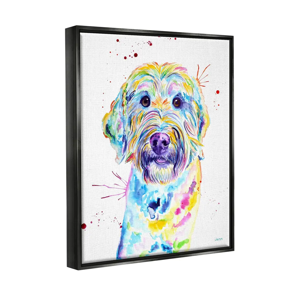 Stupell Vivid Goldendoodle Dog Pet Floater Canvas Wall Art By Jen Seeley - 17 X 21 - Black