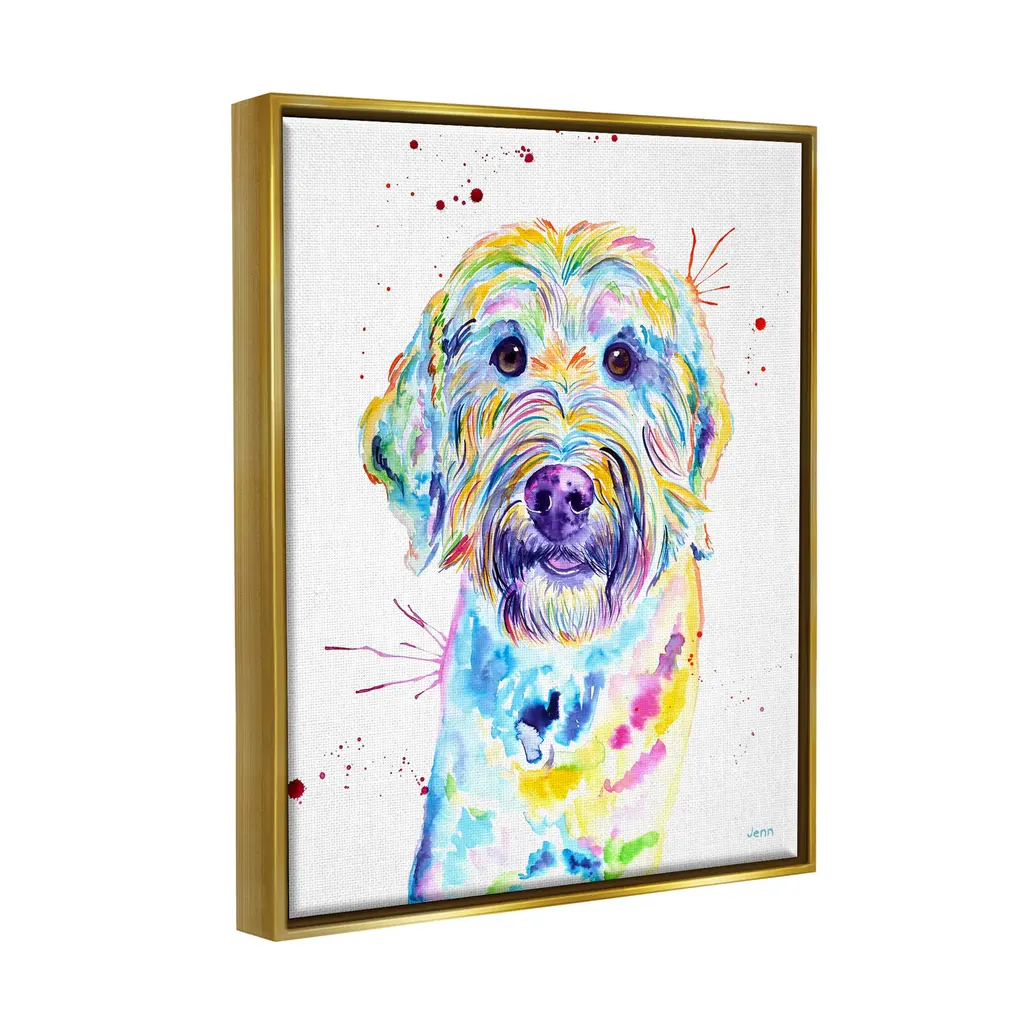 Stupell Vivid Goldendoodle Dog Pet Floater Canvas Wall Art By Jen Seeley - 17 X 21 - Gold