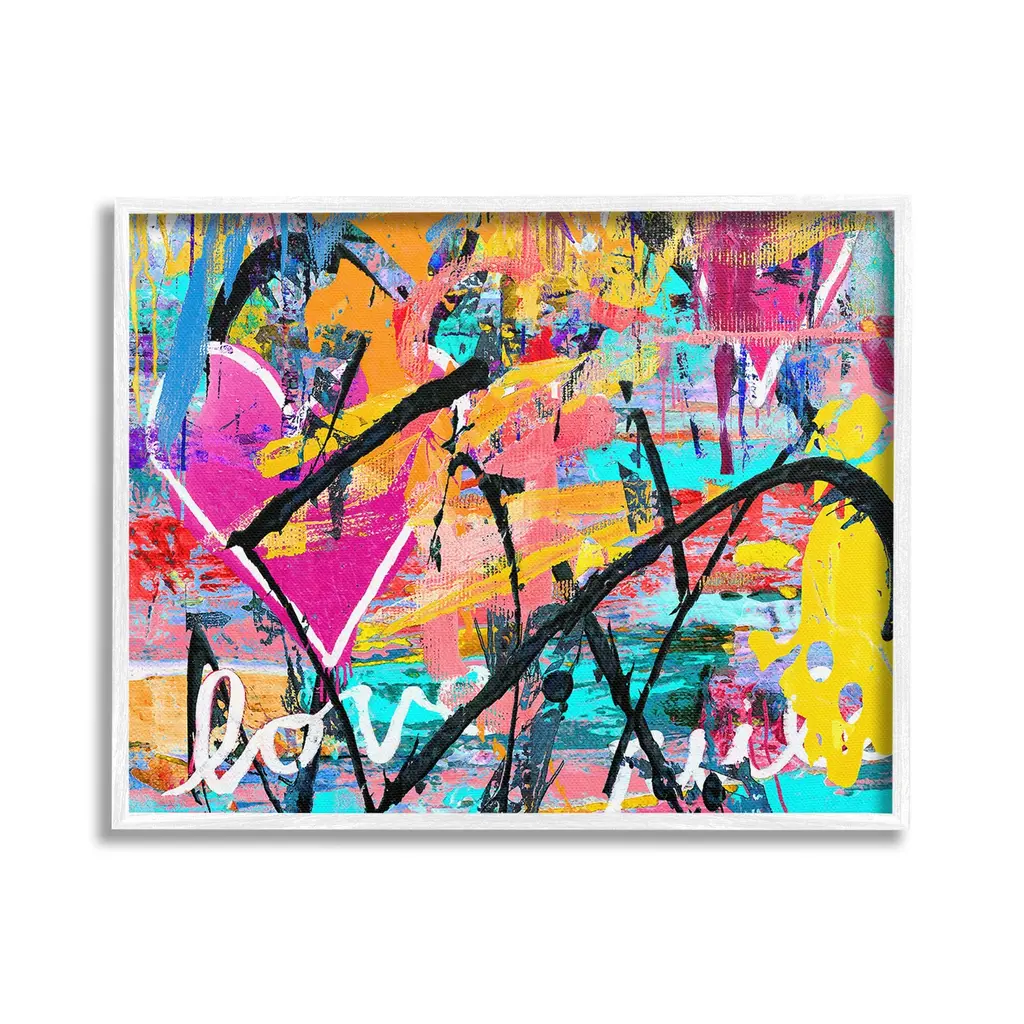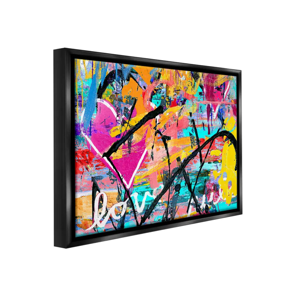 Elevate your home or office to the next level with Stupell Framed Floating Canvas Wall Art. Our premium hand-stretched canvas is mounted securely into a sturdy lightweight frame. The museum-style gap between the wrapped canvas and the box frame gives the illusion of floating artwork. Stupell Wall Art is made in the USA.Features: Dimensions: 21 x 1.7 x 17 Frame, 20 x 1.5 x 16 Canvas ArtFloating Frame Canvas Products are available in sizes 21"x17" and 31"x25". All Floating Frame Canvas Products have a 1.7" Depth.Wall Art is Ready to Hang with Hardware Free Hanging. No Installation required. For Easy Set Up Lean or Layer Artwork on Shelf or Against Wall. Artwork is Permently Fixed into the Frame.Our elevated 1.7" Thick Floating Frame is the perfect complement to our canvas style Wall Art. We use only the highest quality inks in house with industry leading printing solutions. Canvas is hand stretched over a durable wood foundation and then mounted securly into a Modern Box Frame. Made in the USA.Artwork Relates To: Abstract, Modern, Urban, Graffiti, Heart, Symbol, Love, Collage, Bold, VividDesign by Madeline Blake