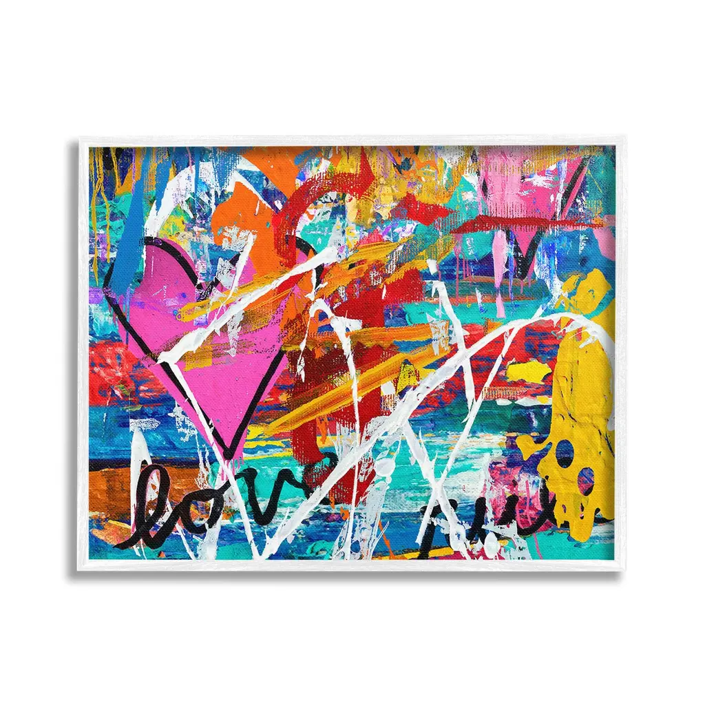 Add dimension to any room with our textured Framed Giclee Artwork. Our framed artwork is securely mounted into a 1.5-inch thick wood grain frame and ready to hang. Frames are available in three alluring styles: black, gray farmhouse and white. In addition, you should check out our oversized options if you want a statement piece. Stupell Wall Art is made in the USA.Features: Dimensions: 14 x 1.5 x 11 FramedFramed Giclee Products are available in the sizes 14"x11", 20"x16" or 30"x24". All Framed Giclee Products have a 1.5" Depth. Wall Art is Ready to Hang with Hardware Free Hanging. No installation required. For Easy Set Up Lean or Layer Artwork on Shelf or Against Wall.Our giclée prints are carefully mounted on a durable MDF backing, and then perfectly finished in a 1.5 inch thick woodgrain frame. Mounted frame colors include black, gray farmhouse and white. Made In USA.Artwork Relates To: Abstract, Modern, Urban, Graffiti, Heart, Symbol, Love, Collage, Bold, VividDesign by Madeline Blake