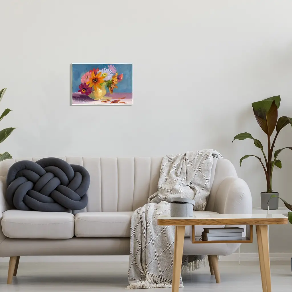 Our wall plaques start as high-quality lithograph prints mounted on durable 0.5-inch thick MDF wood. Each piece is hand finished and comes with a fresh layer of white foil on the sides to give it a crisp, clean look. Plaques arrive ready to hang without installation and come with removable plastic corners to keep them from damage in transit. Wall Art is made in the USA.Features: Dimensions: 15 x 0.5 x 10 InchesWall Plaque Sizes Include Standard: 15 x 0.5 x 10 Oversized: 19 x 0.5 x 13Wall Art is Ready to Hang with Hardware Free Hanging. No installation required. For Easy Set Up Lean or Layer Artwork on Shelf or Against Wall.All of our wall plaques start off as high quality lithograph prints that are then mounted on durable 0.5 inch thick MDF wood. Each piece is hand finished and comes with a fresh layer of foil on the sides to give it a crisp clean look. Made In USA.Artwork Relates To: Painting, Floral, Flower, Plant, Flower Arrangement, Daisy, Flower Bouquet, Jar, Pottery, Vase, Modern, Mums, Still LifeDesign by Bley Hack