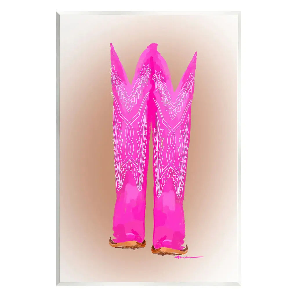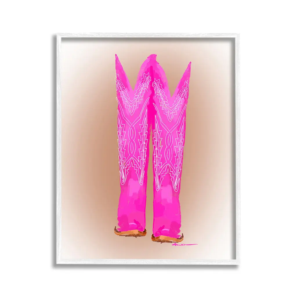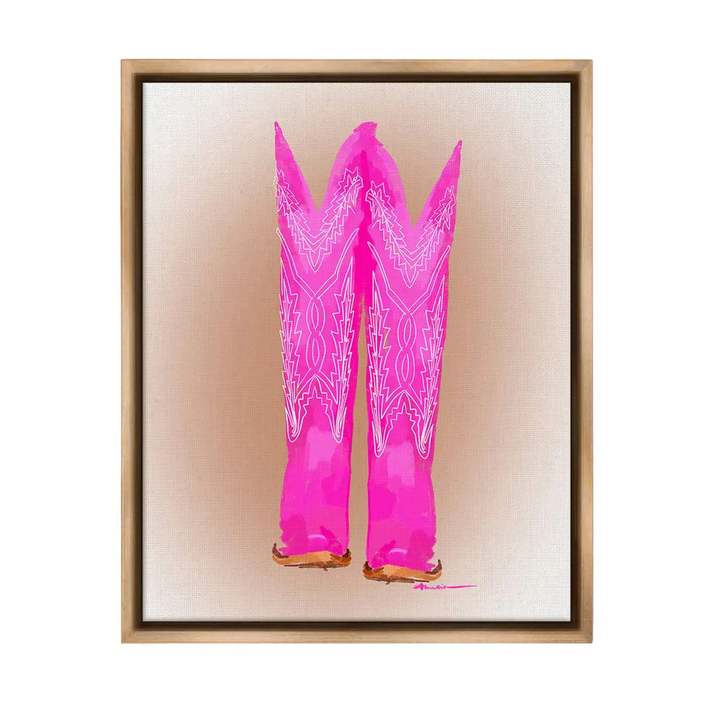 Elevate your home or office to the next level with Stupell Framed Floating Canvas Wall Art. Our premium hand-stretched canvas is mounted securely into a sturdy lightweight frame. The museum-style gap between the wrapped canvas and the box frame gives the illusion of floating artwork. Stupell Wall Art is made in the USA.Features: Dimensions: 17 x 1.7 x 21 Frame, 16 x 1.5 x 20 Canvas ArtFloating Frame Canvas Products are available in sizes 17"x21" and 25"x31". All Floating Frame Canvas Products have a 1.7" Depth.Wall Art is Ready to Hang with Hardware Free Hanging. No Installation required. For Easy Set Up Lean or Layer Artwork on Shelf or Against Wall. Artwork is Permently Fixed into the Frame.Our elevated 1.7" Thick Floating Frame is the perfect complement to our canvas style Wall Art. We use only the highest quality inks in house with industry leading printing solutions. Canvas is hand stretched over a durable wood foundation and then mounted securly into a Modern Box Frame. Made in the USA.Artwork Relates To: Equestrian, Rodeo, Country, Southwestern, Cowgirl, Cowboy Boot, Abstract, PinkDesign by Amelia Noyes